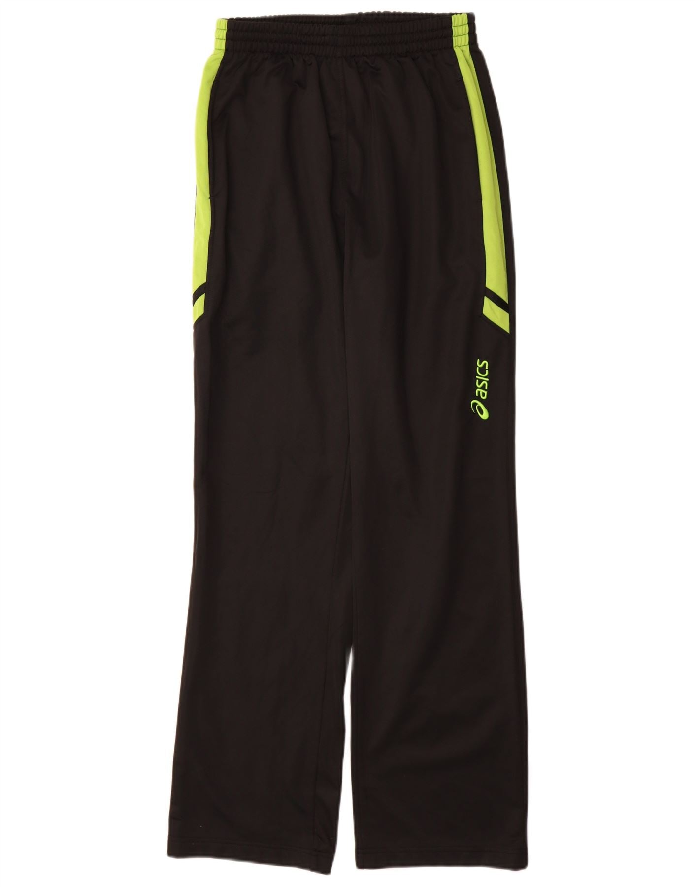 - AI Description: This Asics mens tracksuit trousers are crafted from a lightweight blended fabric, offering comfort and flexibility. They feature a classic black base with vibrant green side panels. The Asics logo is subtly placed on the leg. A pull-on elastic waist ensures a secure, comfortable fit. The regular fit provides ease of movement, ideal for running. These joggers combine practical design with a sporty aesthetic.