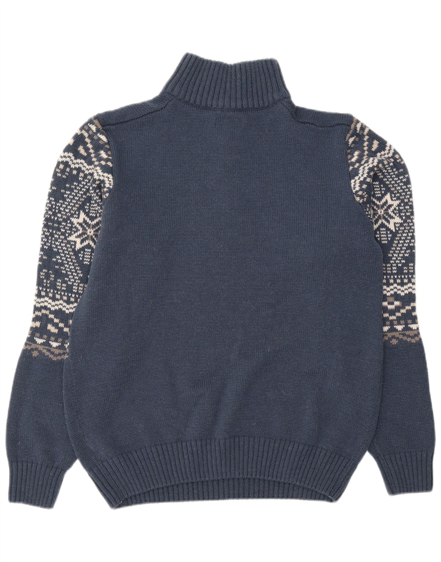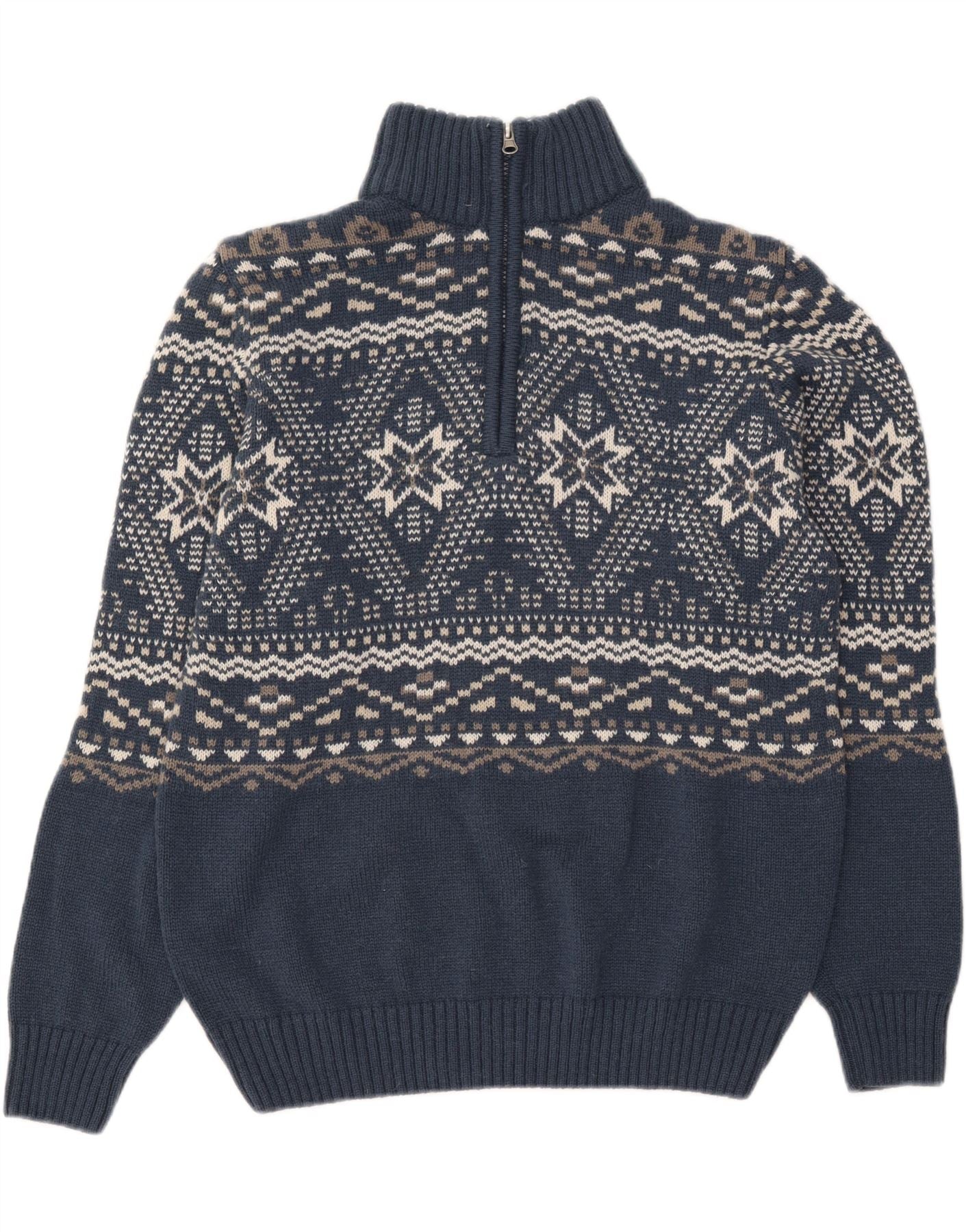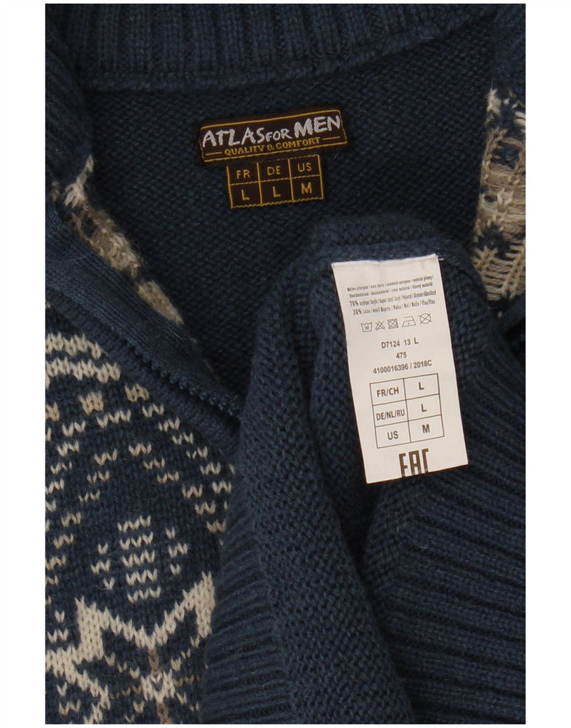 ATLAS FOR MEN Mens Zip Neck Jumper Sweater Medium Blue Fair Isle Acrylic