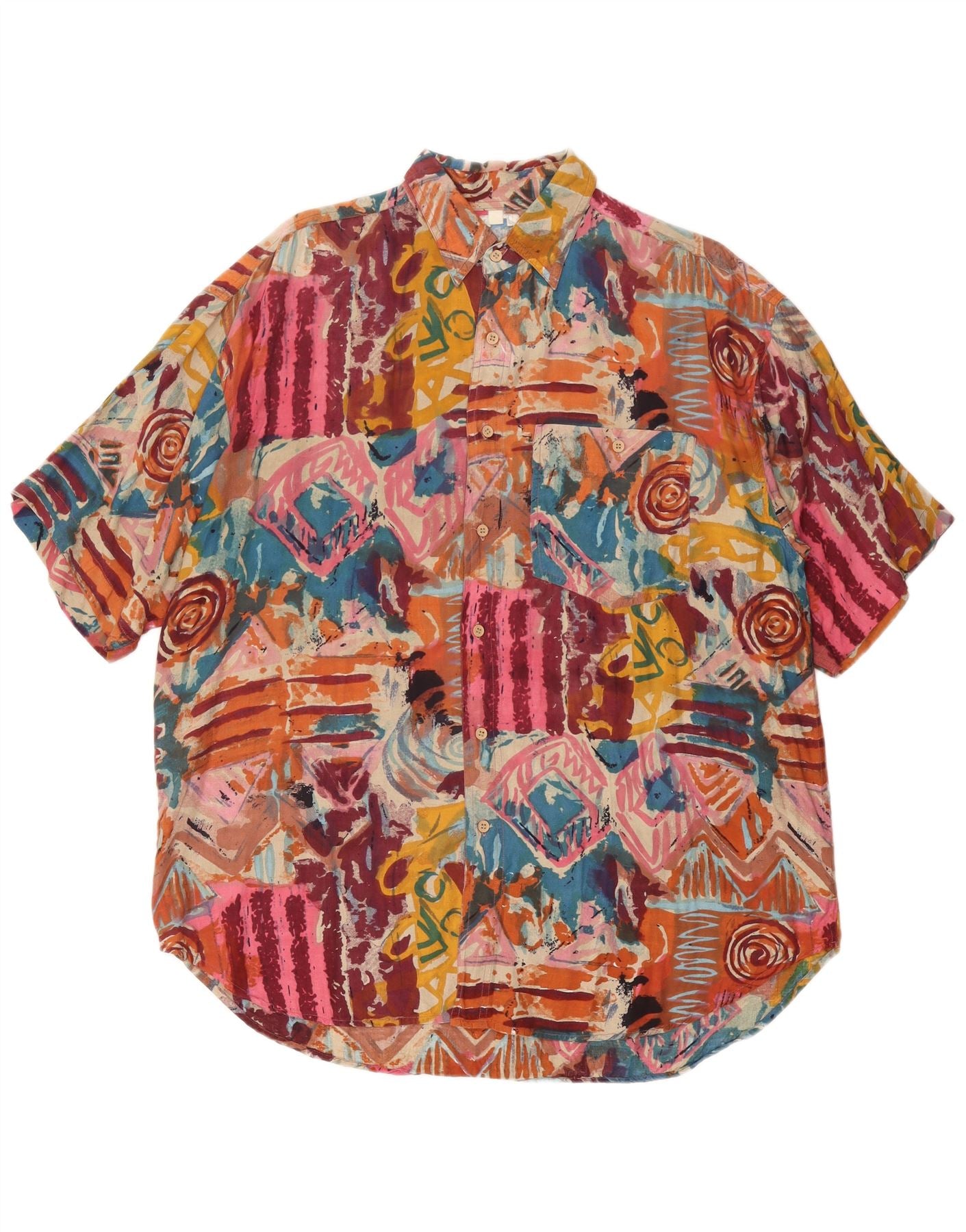 AVANTI Mens Short Sleeve Shirt XL Multicoloured Geometric Viscose