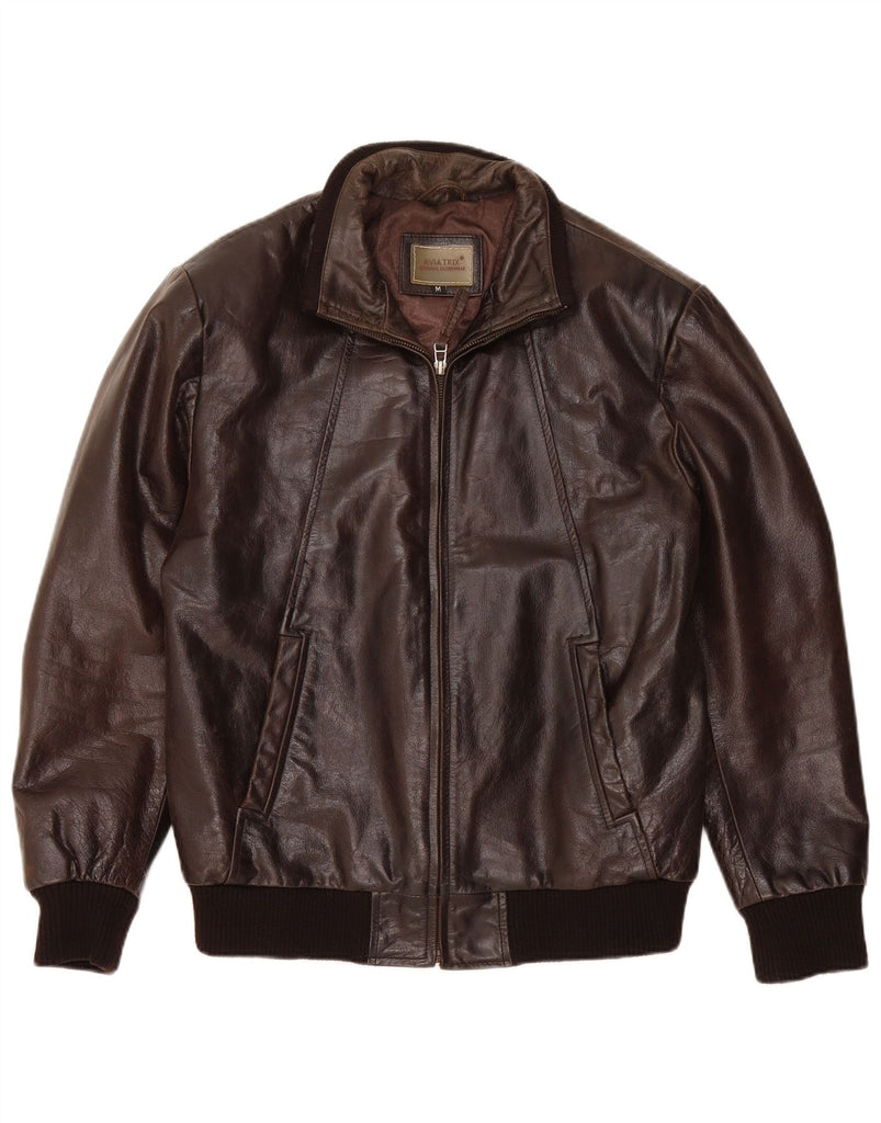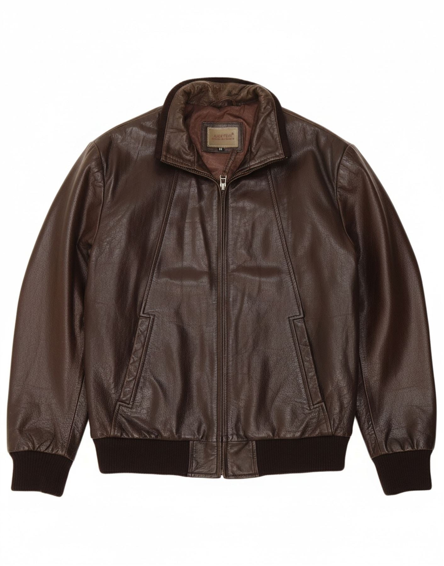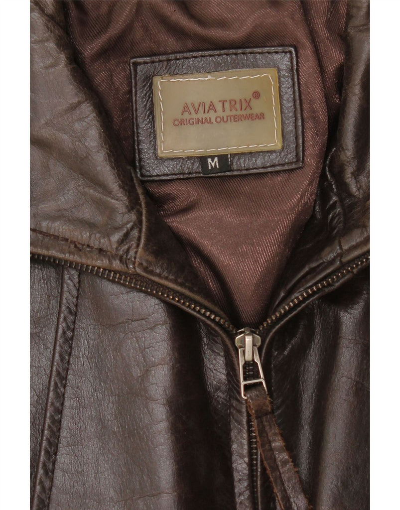 AVIA TRIX Mens Leather Bomber Jacket UK 38 Medium Brown Leather