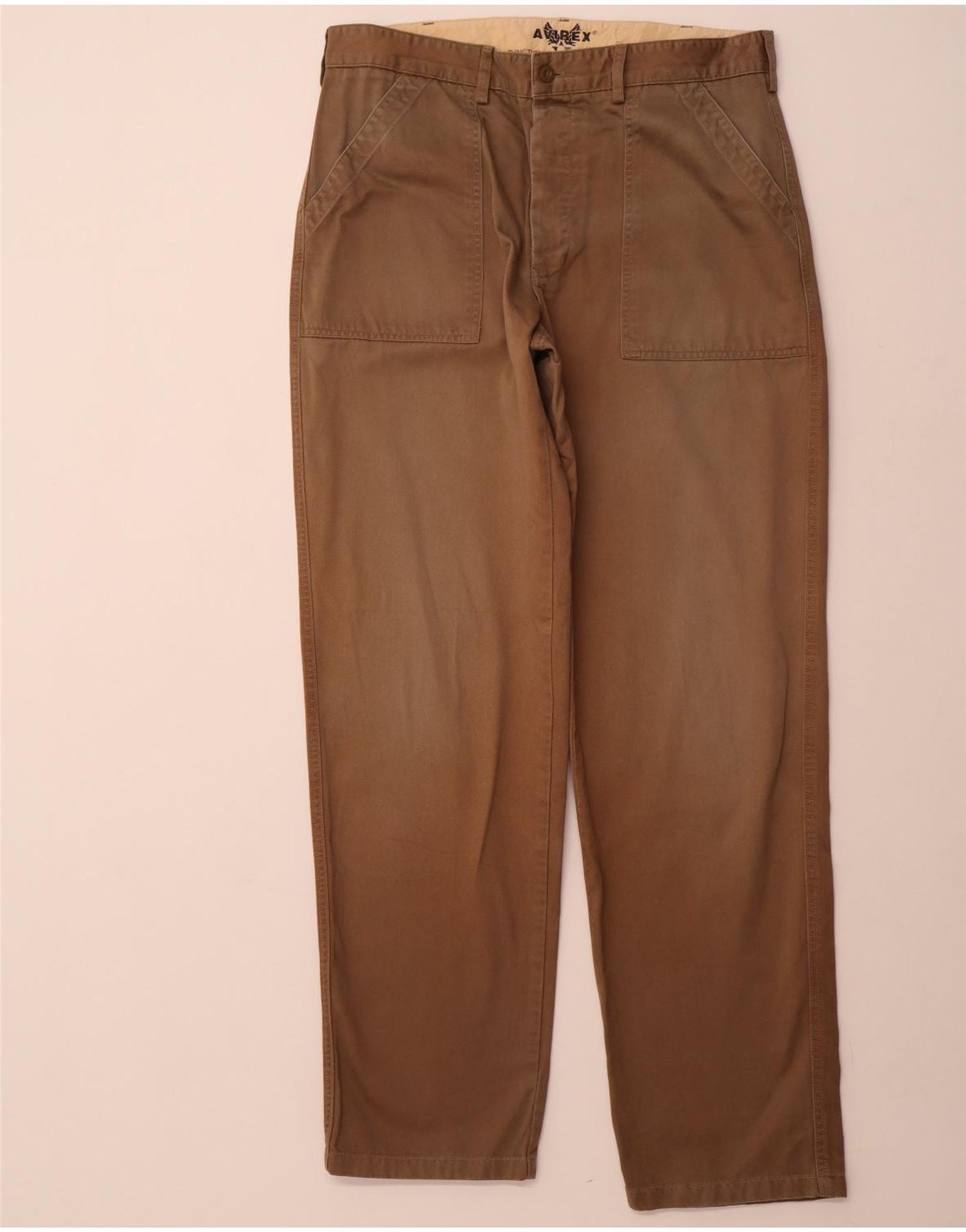 AVIREX Mens Straight Chino Trousers W34 L33 Brown Cotton
