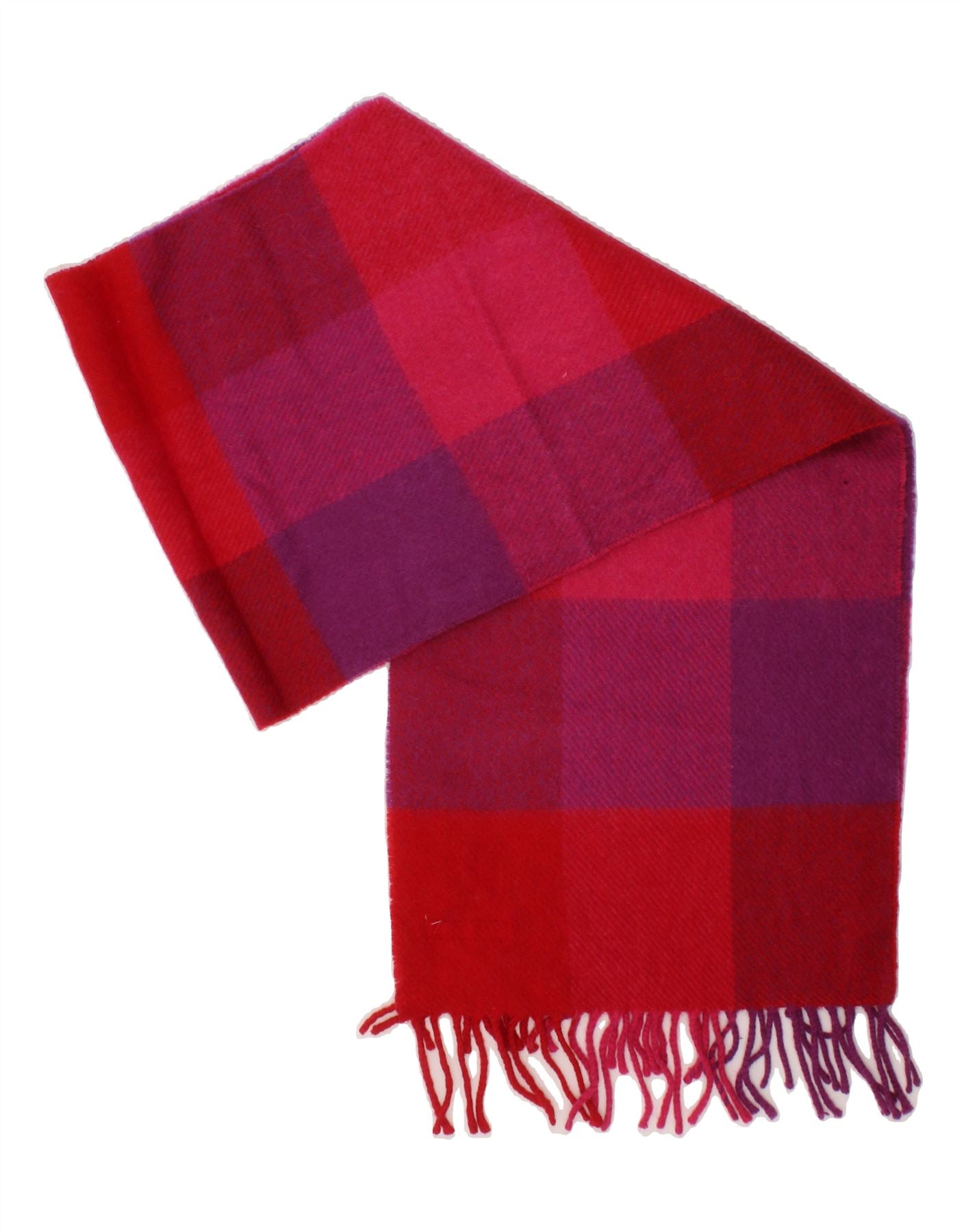 AVOCA Womens Rectangle Scarf One Size Red Check Wool Classic