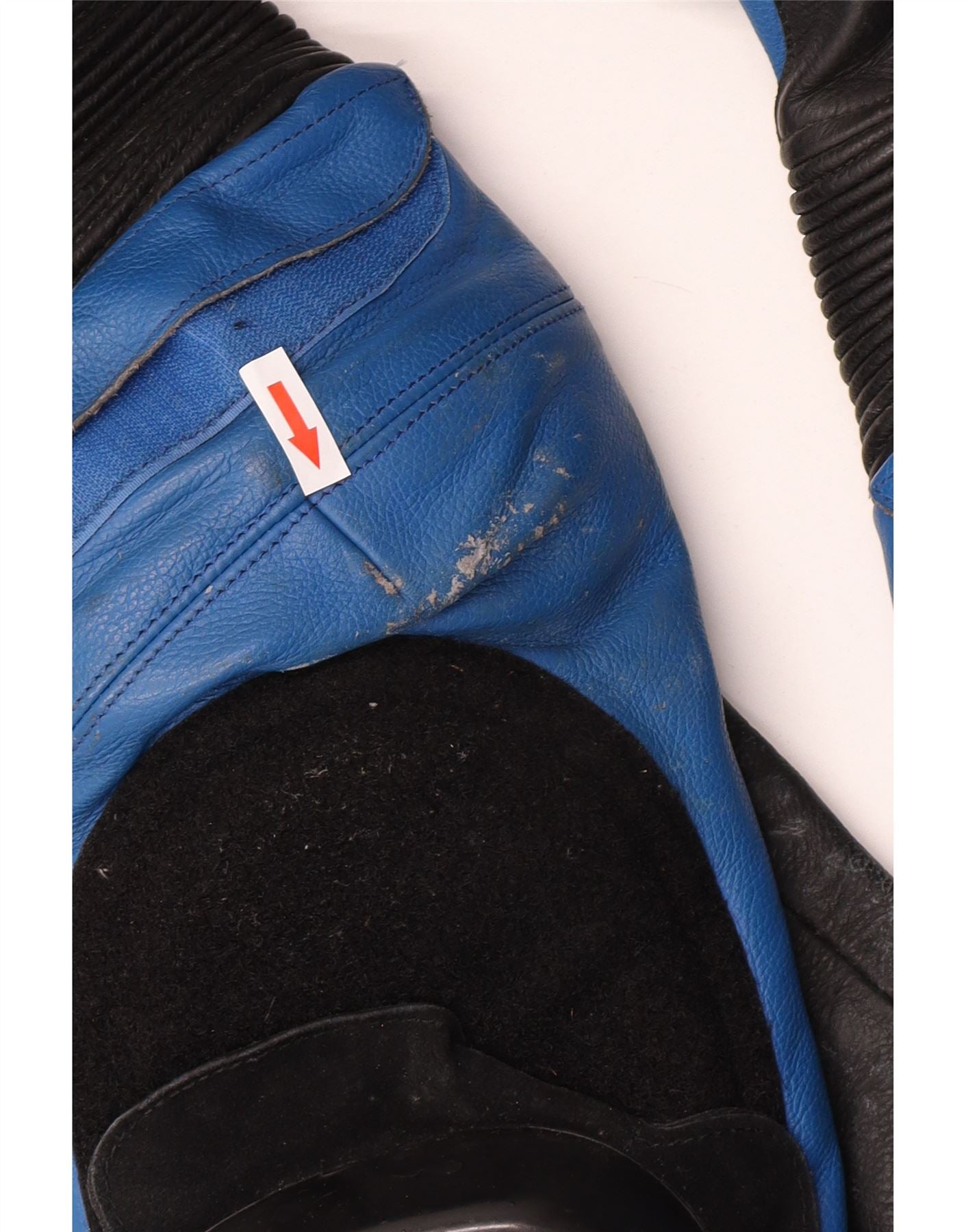 • Condition: Fair Used Condition: the item has been frequently worn and may have numerous flaws - Worn material. Marks on multiple places. missing safety protector under knee. vents under armpits.