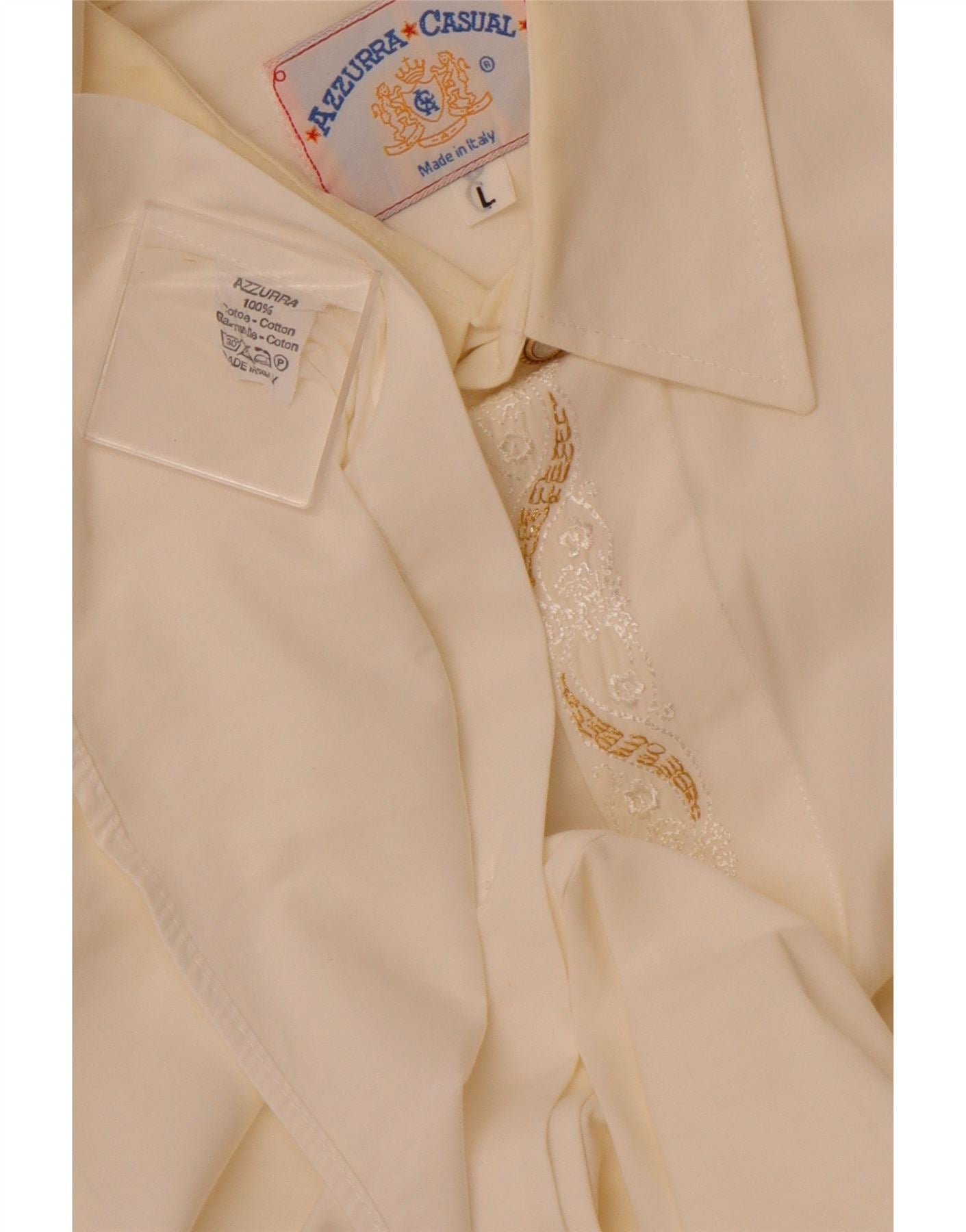 AZZURRA Mens Shirt Large Off White Cotton