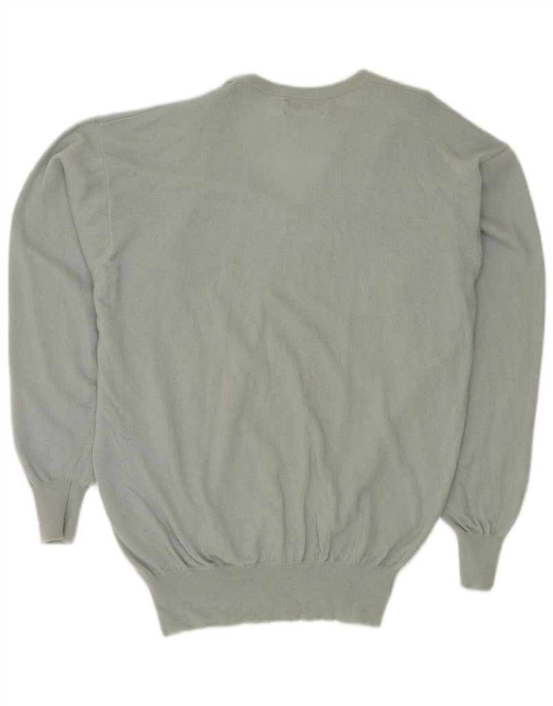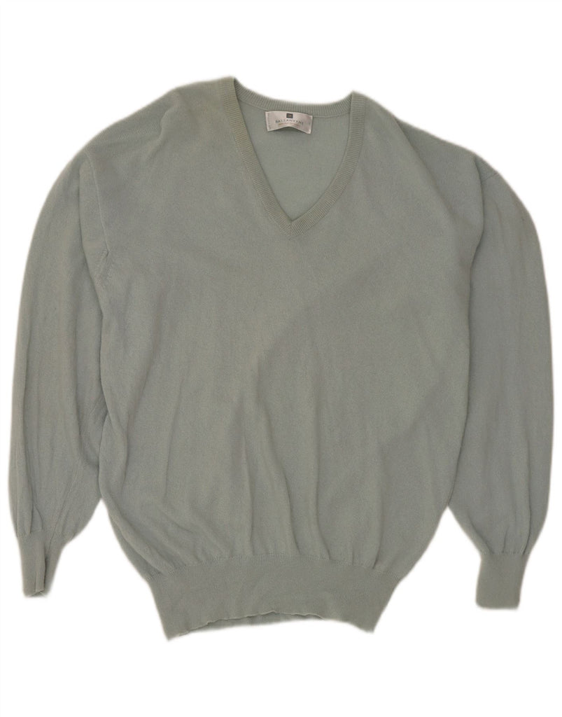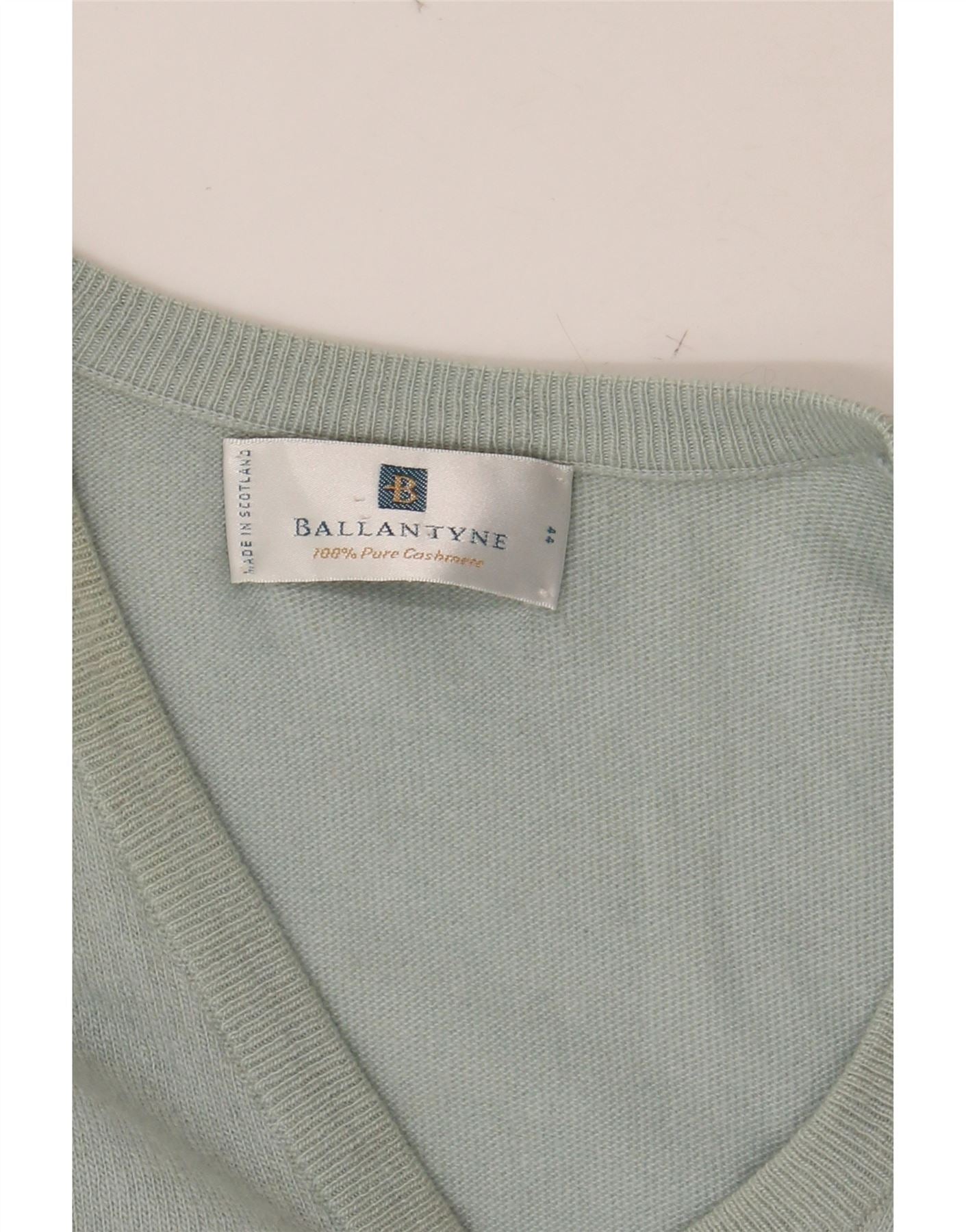 BALLANTYNE Mens V-Neck Jumper Sweater UK 44 XL Blue Cashmere