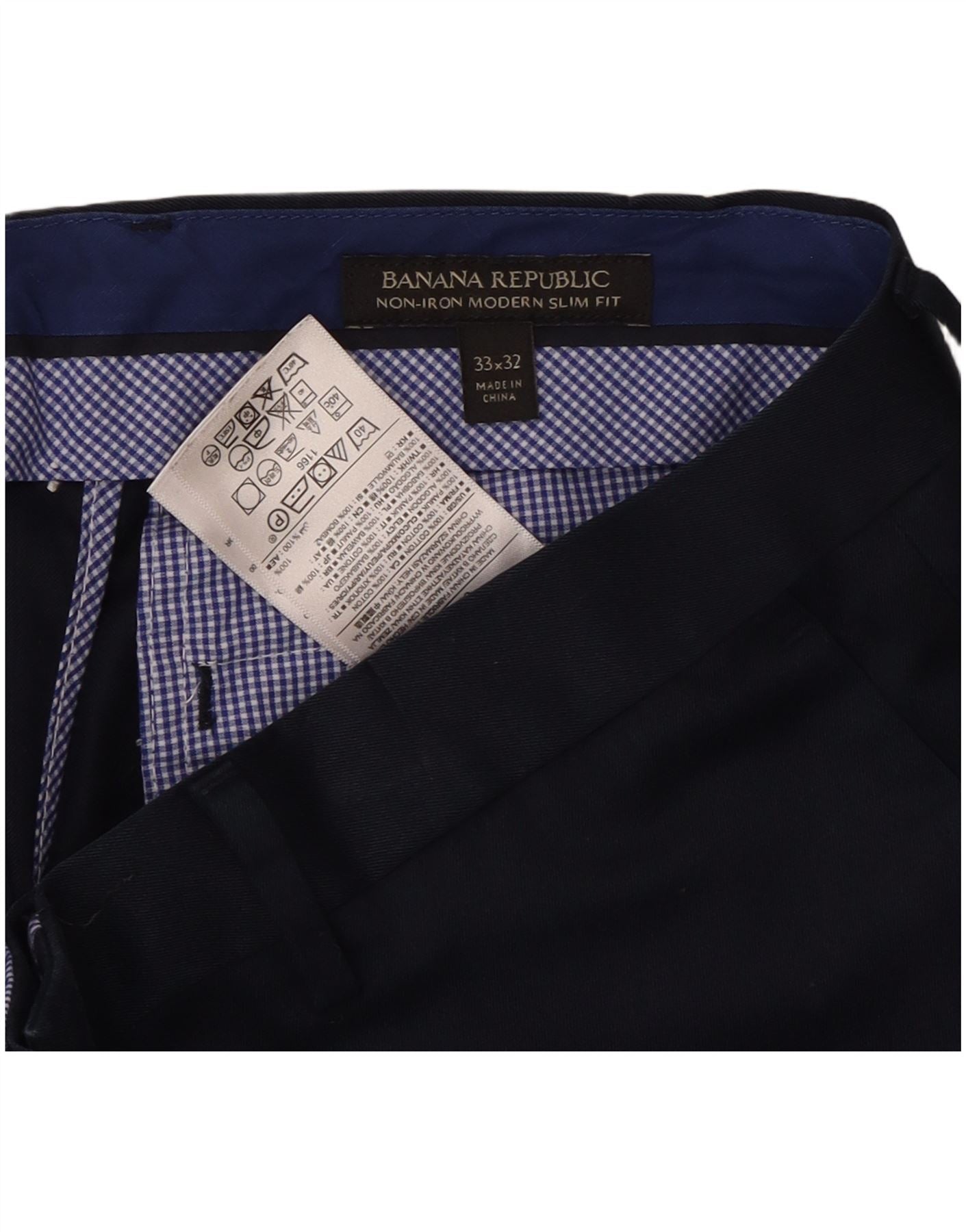 BANANA REPUBLIC Mens Slim Fit Chino Trousers W33 L30 Navy Blue Cotton