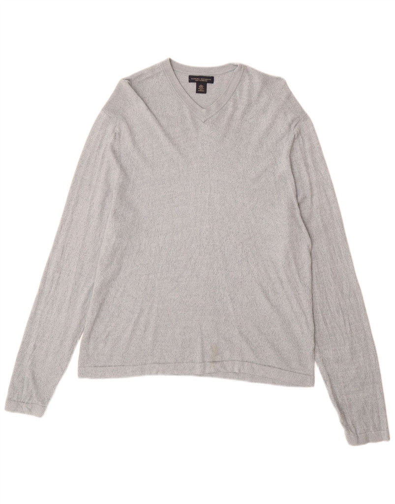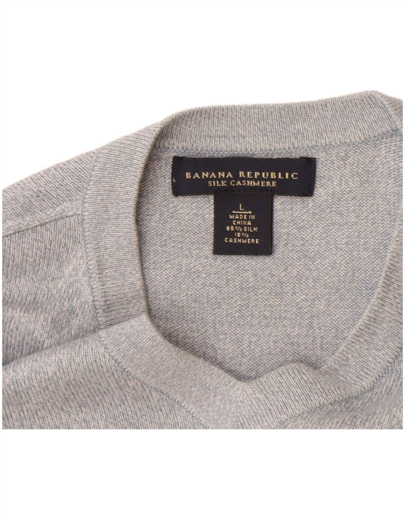 BANANA REPUBLIC Mens V-Neck Jumper Sweater Large Blue Flecked Silk