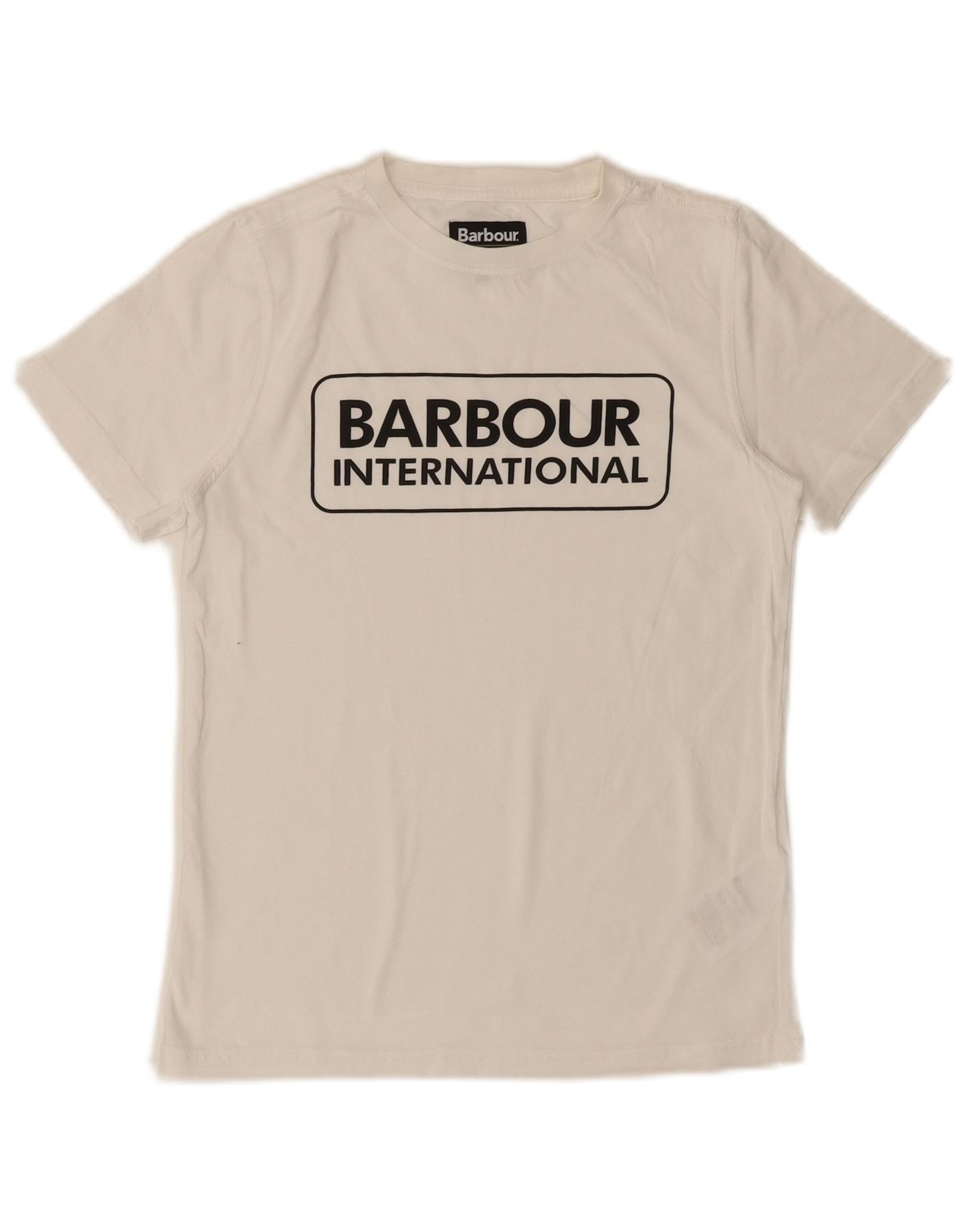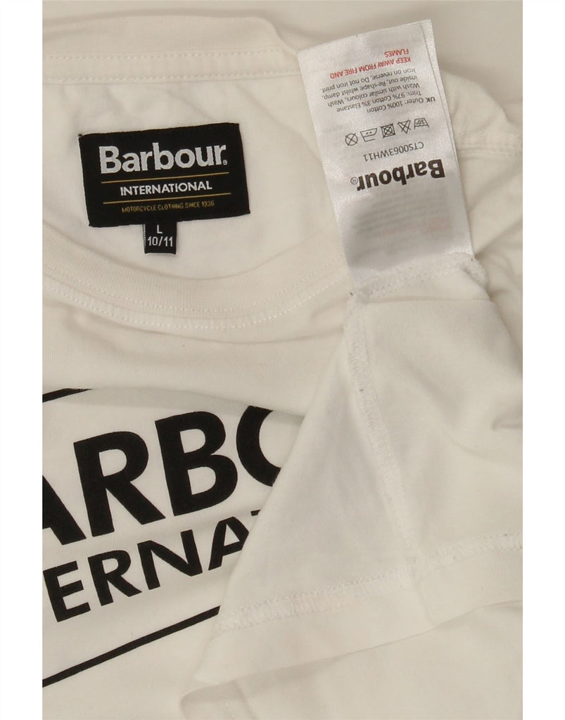 BARBOUR Boys Graphic T-Shirt Top 10-11 Years Large White Cotton