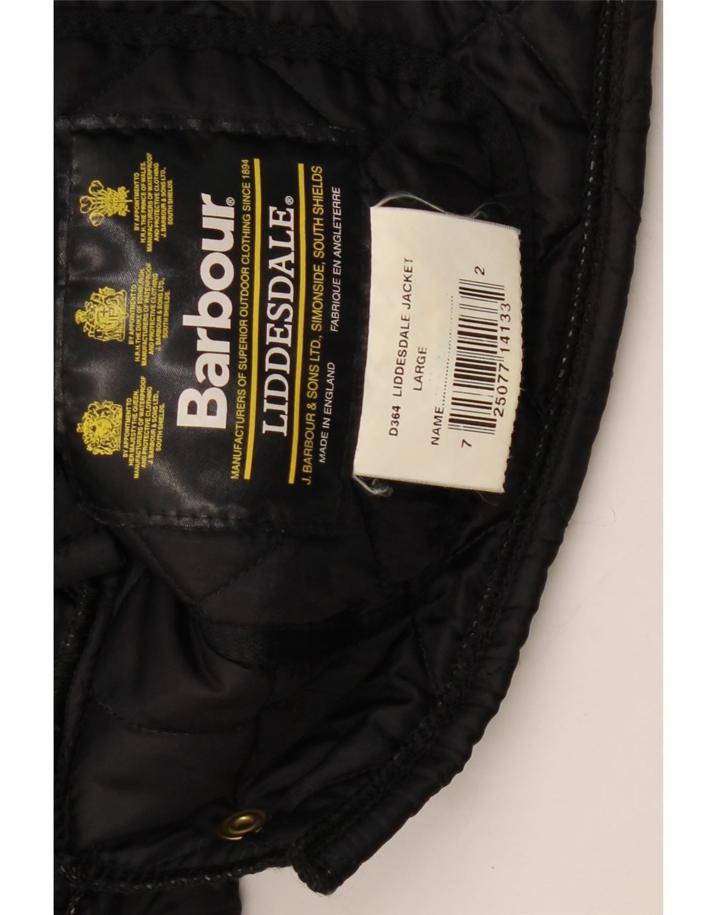 - AI Description: This Barbour mens quilted jacket, the classic Liddesdale, is crafted from a lightweight black blended fabric. Its signature quilted pattern provides warmth and texture. The collared neckline features a contrasting corduroy trim, adding a refined detail. Long sleeves and a regular fit ensure comfortable wear. Snap closures secure the front, and practical pockets complete this timeless design.