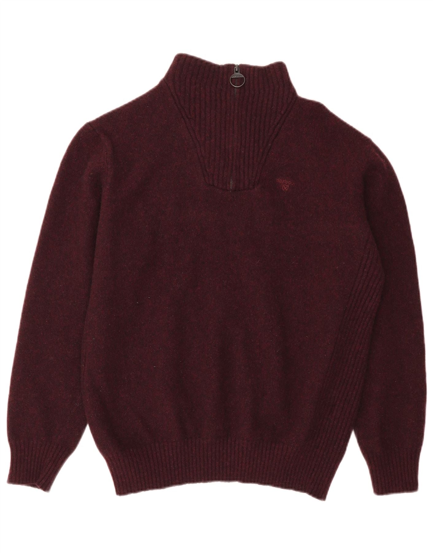 BARBOUR Mens Zip Neck Jumper Sweater Medium Burgundy Wool