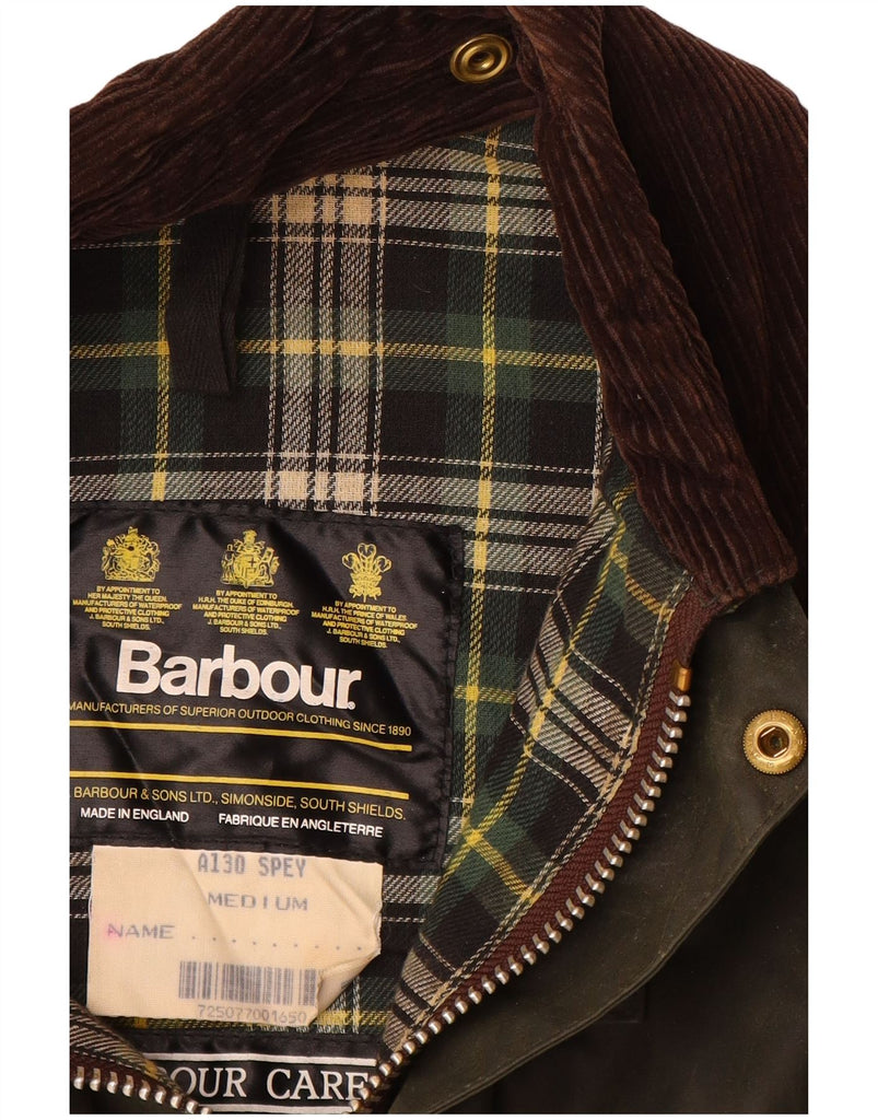 BARBOUR Womens Crop Waxed Cotton Jacket UK 14 Medium Khaki Cotton
