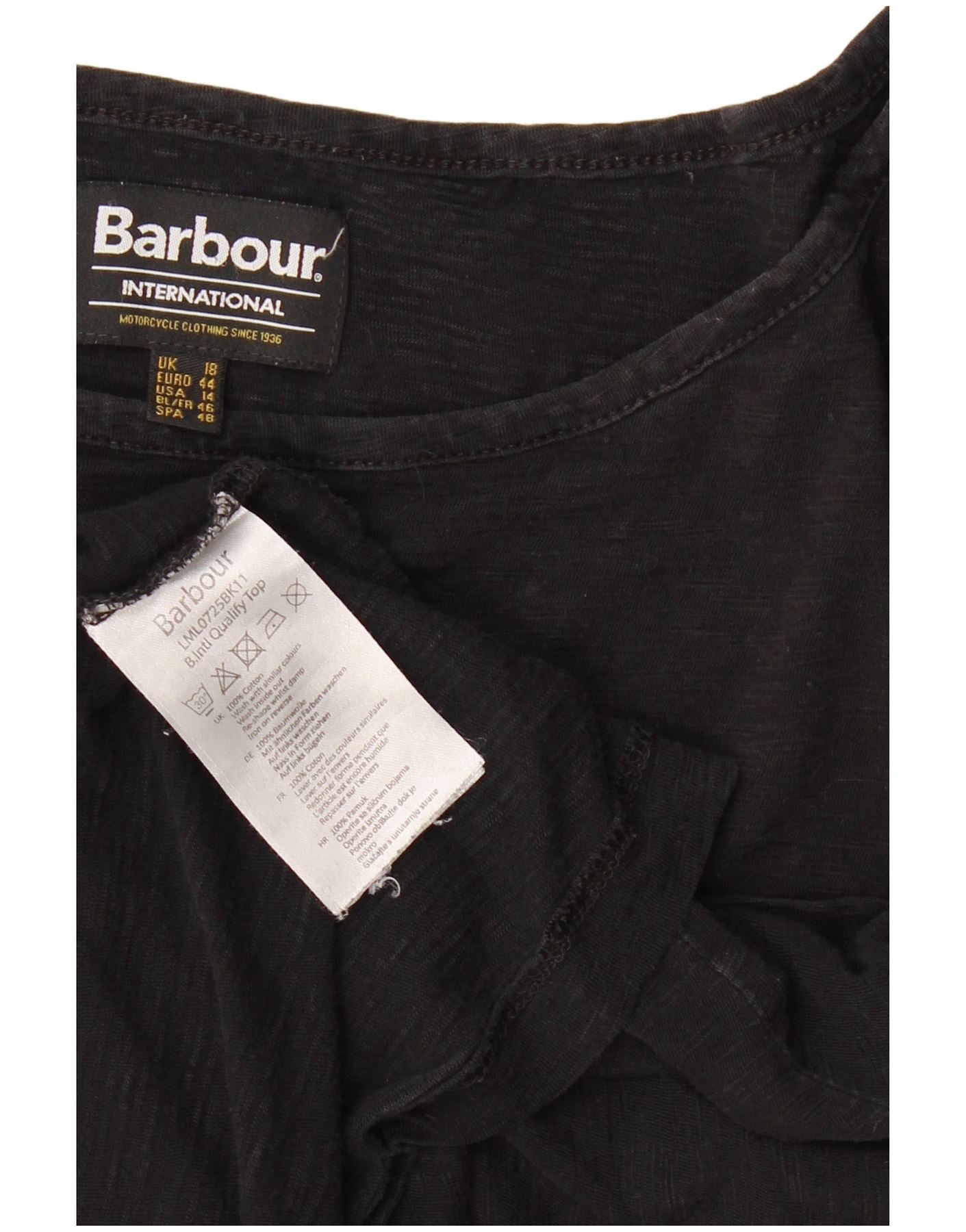 Barbour Womens T-Shirt Top UK 18 XL Black Cotton