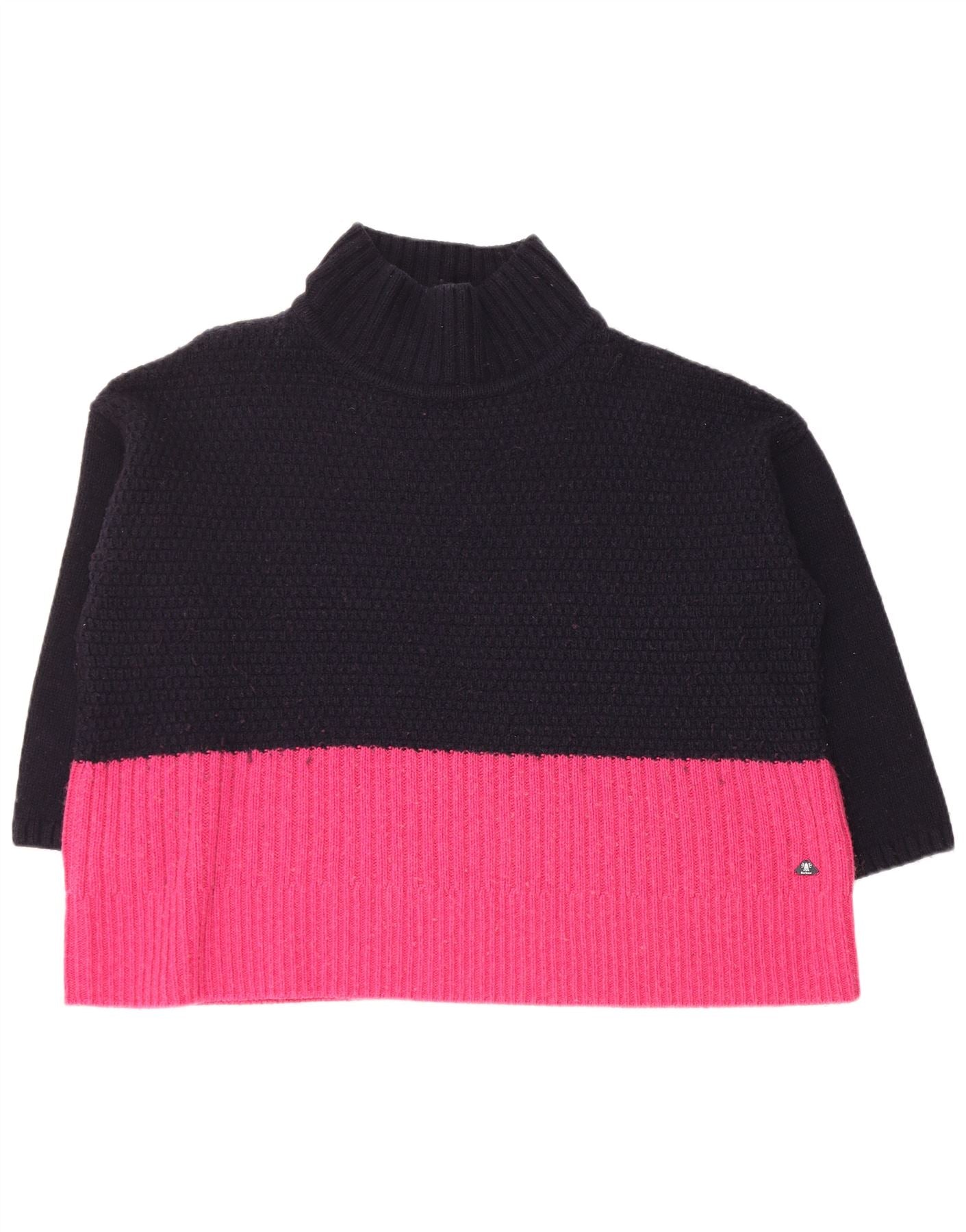BARBOUR Womens Turtle Neck Jumper Sweater UK 18 XL Navy Blue Colourblock