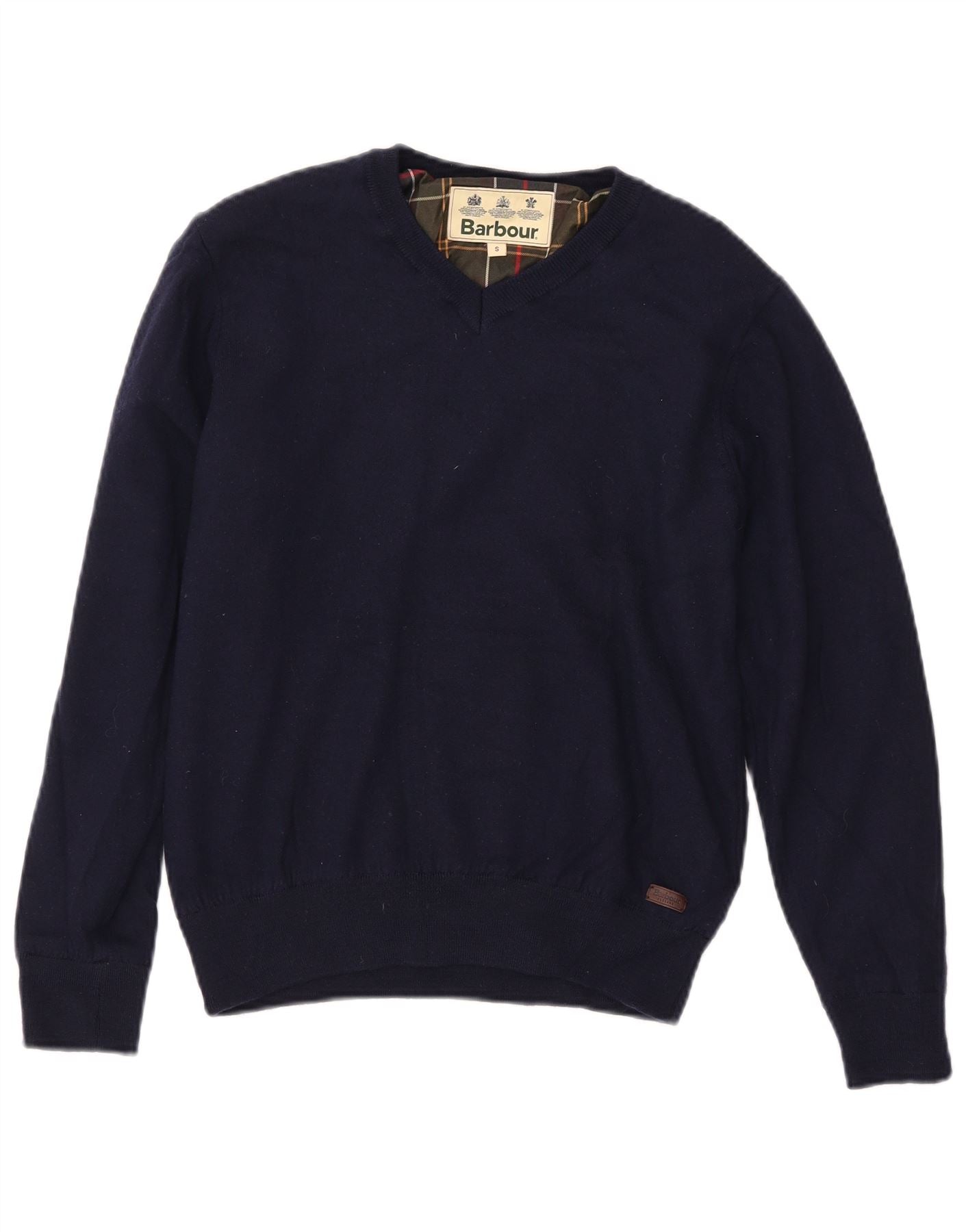 BARBOUR Womens V-Neck Jumper Sweater UK 10 Small Navy Blue Wool