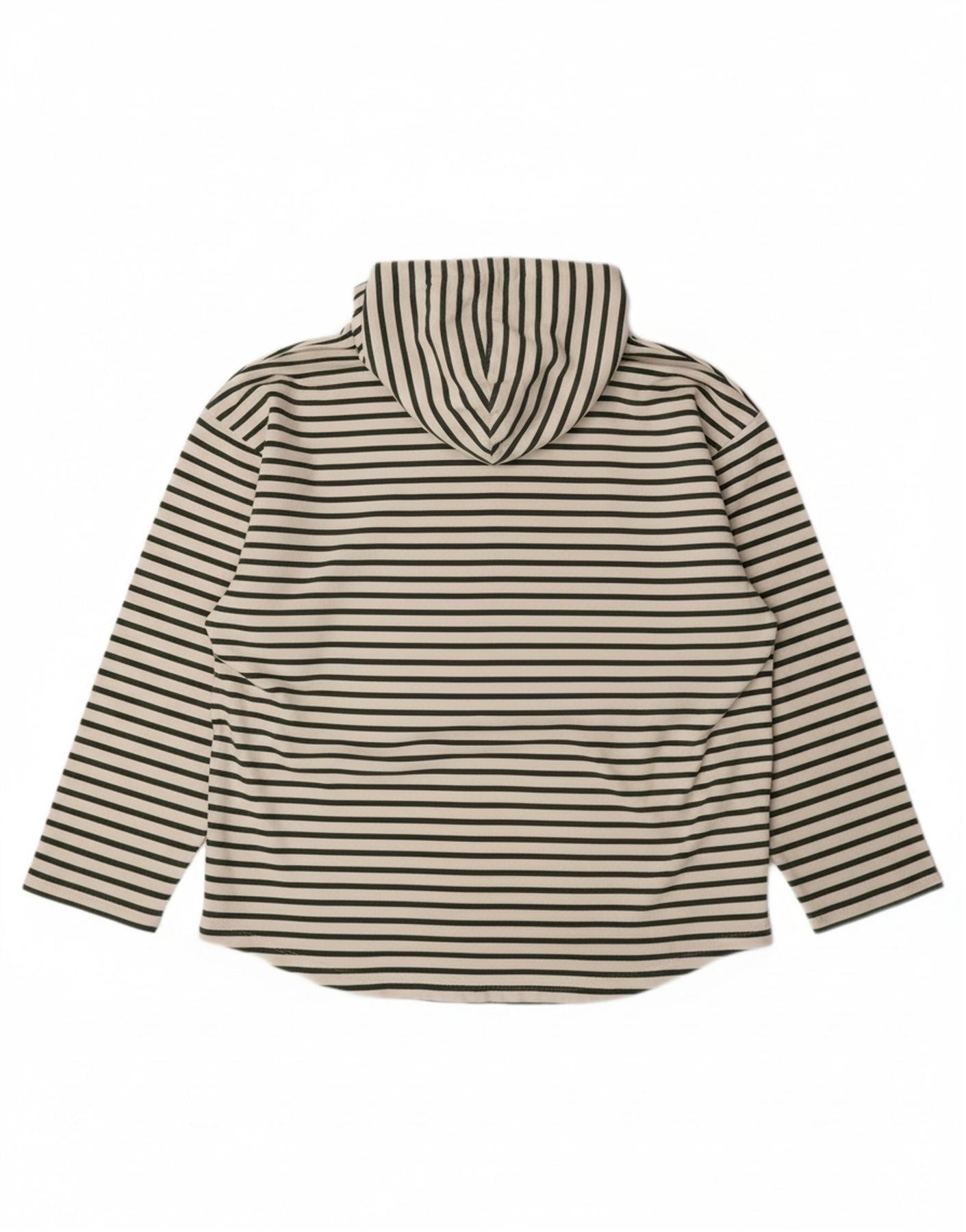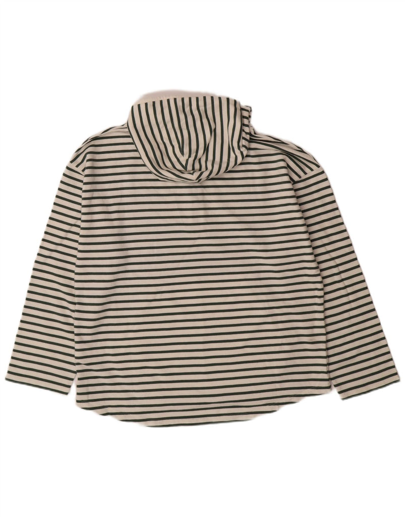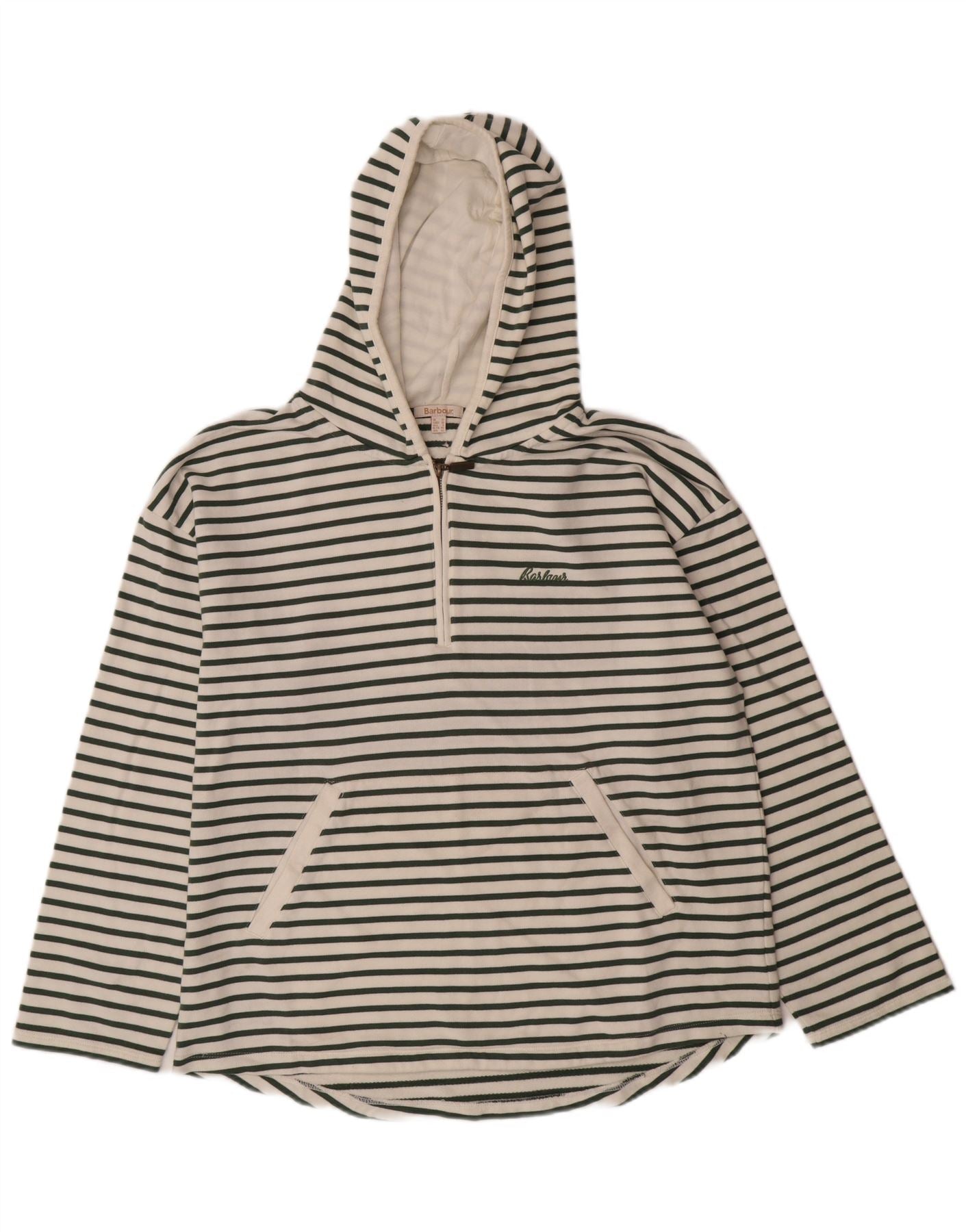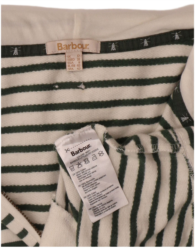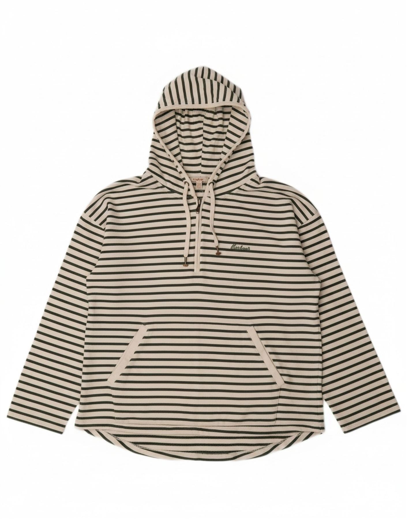 BARBOUR Womens Zip Neck Hoodie Jumper UK 12 Medium White Striped Cotton
