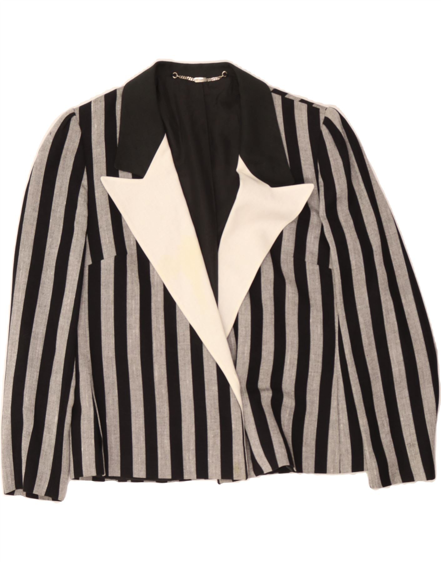 BASLER Womens 1 Button Blazer Jacket UK 14 Large Black Striped Viscose