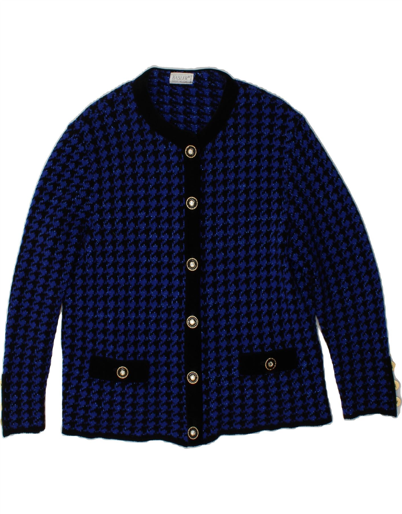 BASLER Womens Cardigan Sweater EU 42 Large Blue Houndstooth Wool