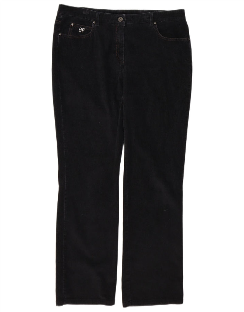BELFE Womens Bootcut Corduroy Trousers UK 14 Large W36 L29 Black Cotton