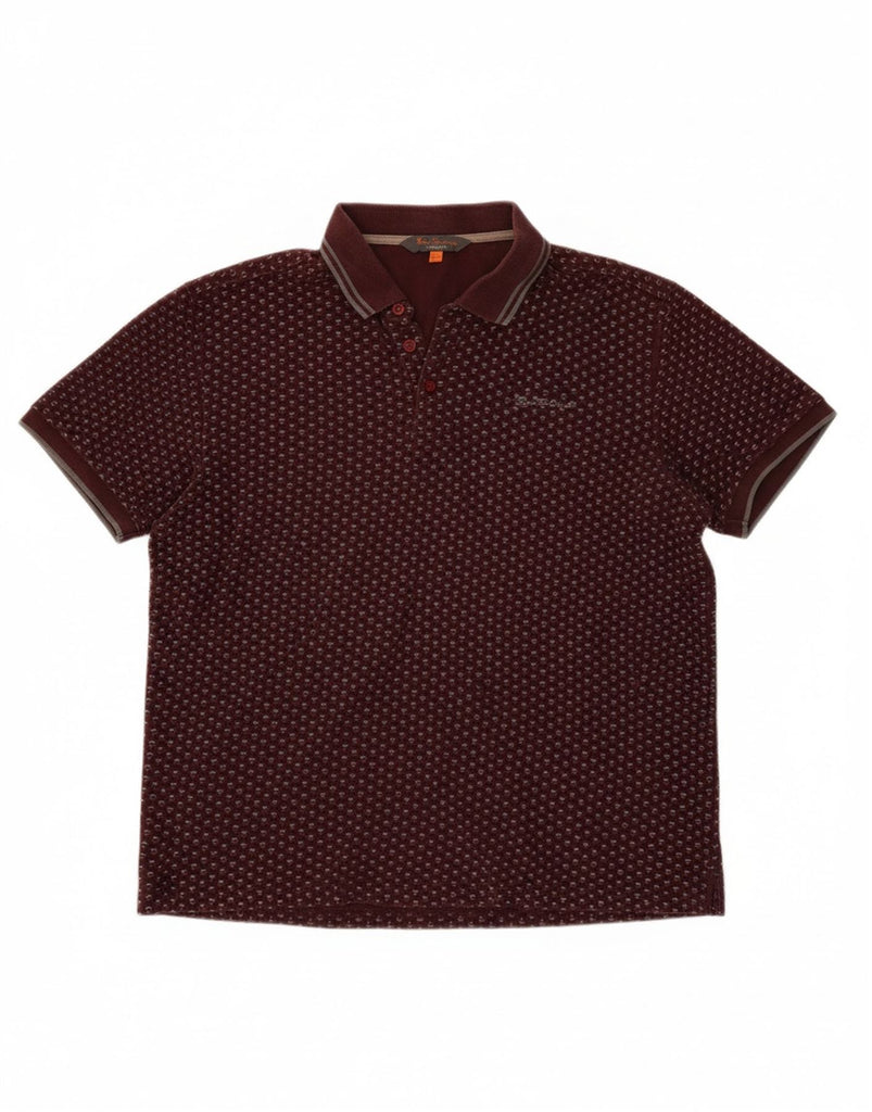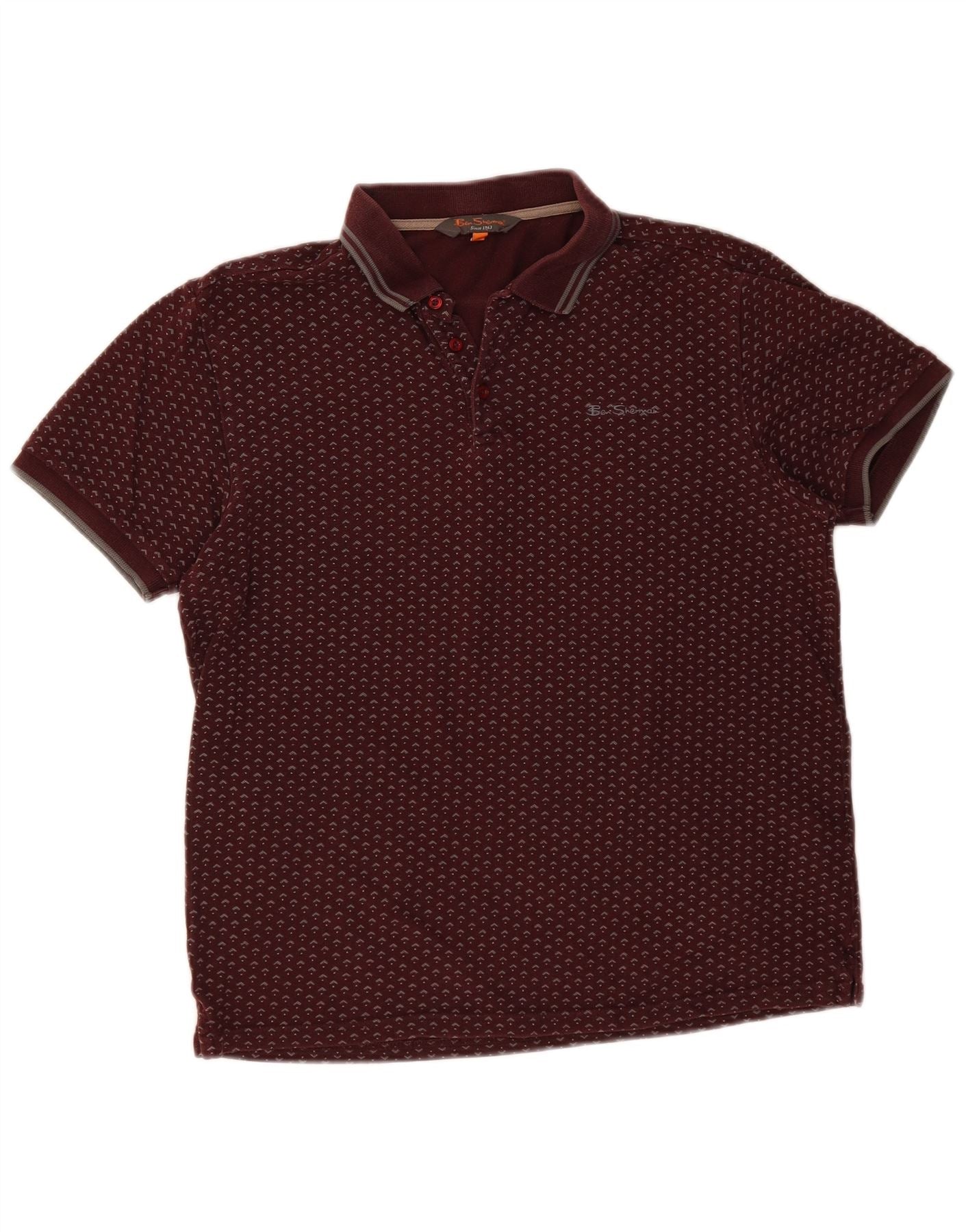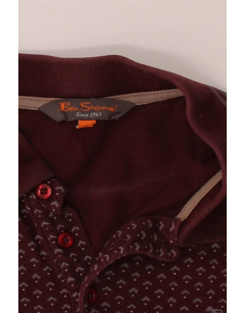 BEN SHERMAN Mens Abstract Pattern Polo Shirt Medium Burgundy Cotton