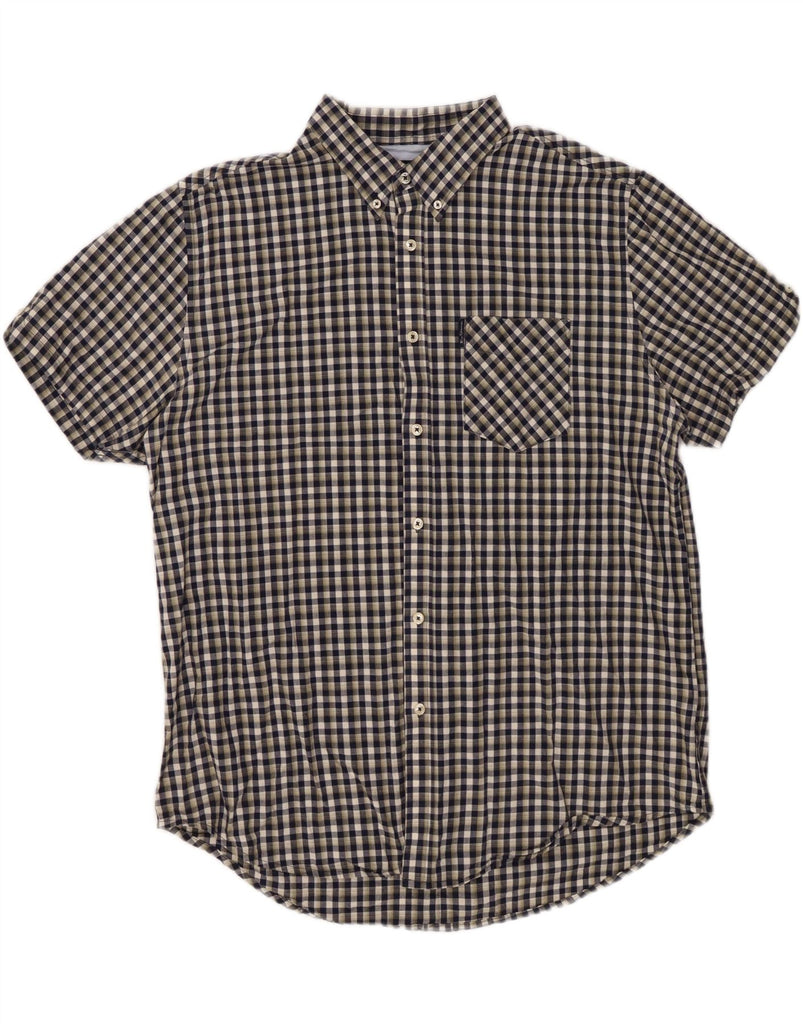 BEN SHERMAN Mens Short Sleeve Shirt 2XL Navy Blue Gingham Cotton