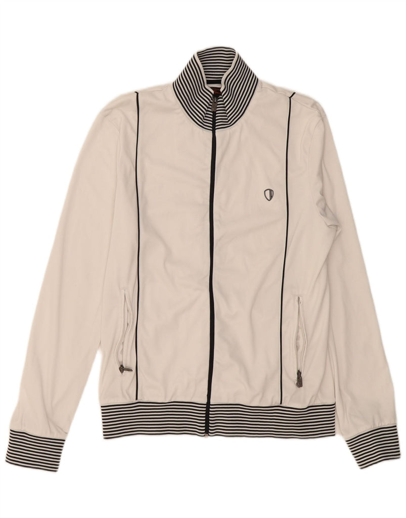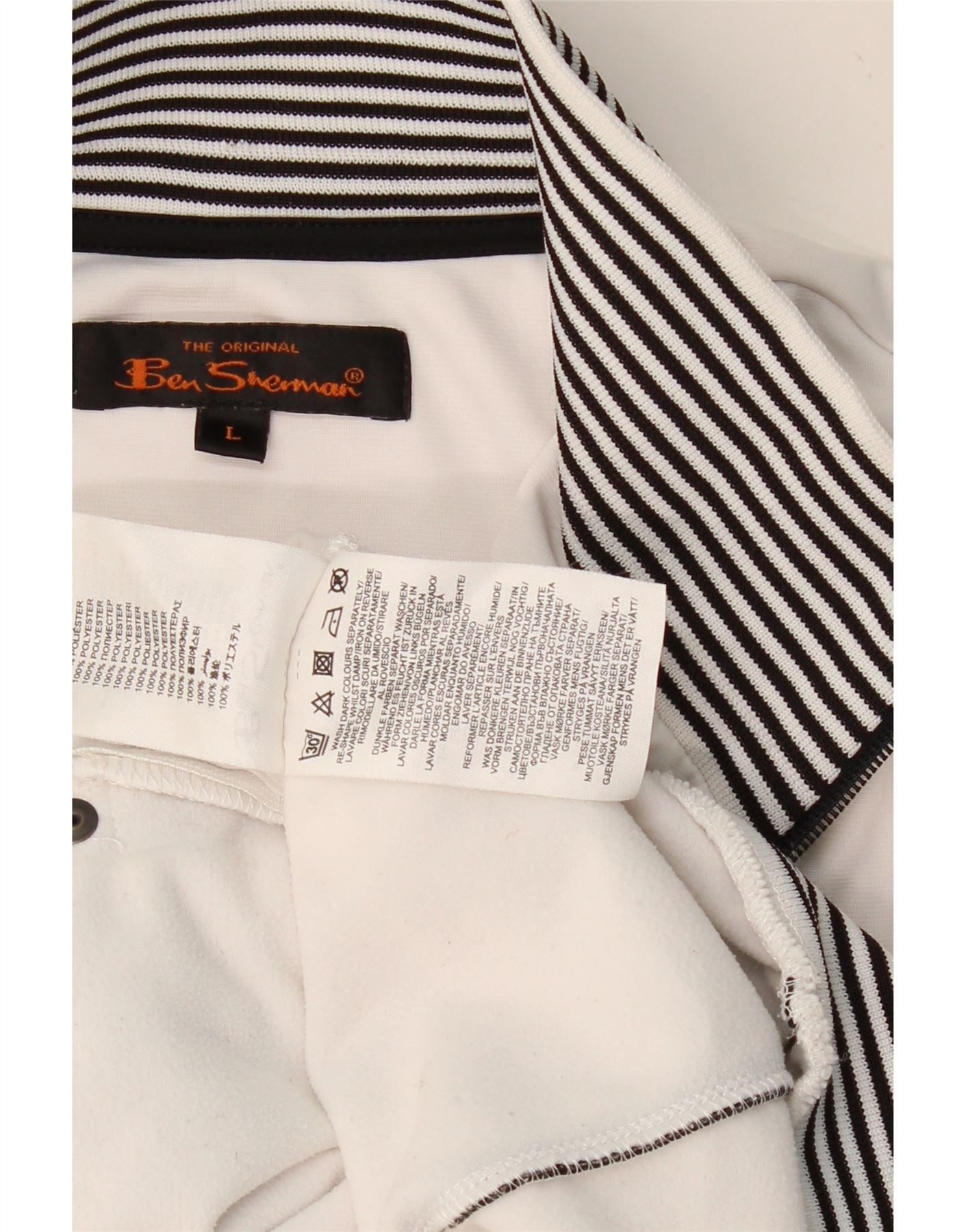 BEN SHERMAN Mens Tracksuit Top Jacket Large White Striped Polyester
