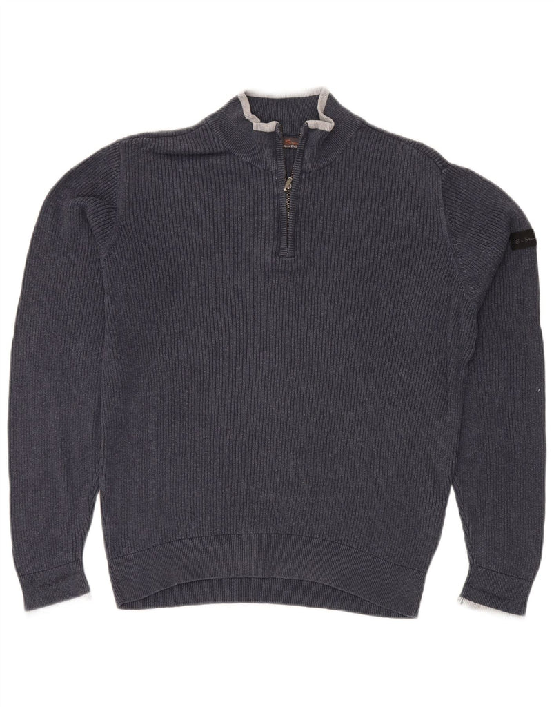 BEN SHERMAN Mens Zip Neck Jumper Sweater Medium Navy Blue Cotton