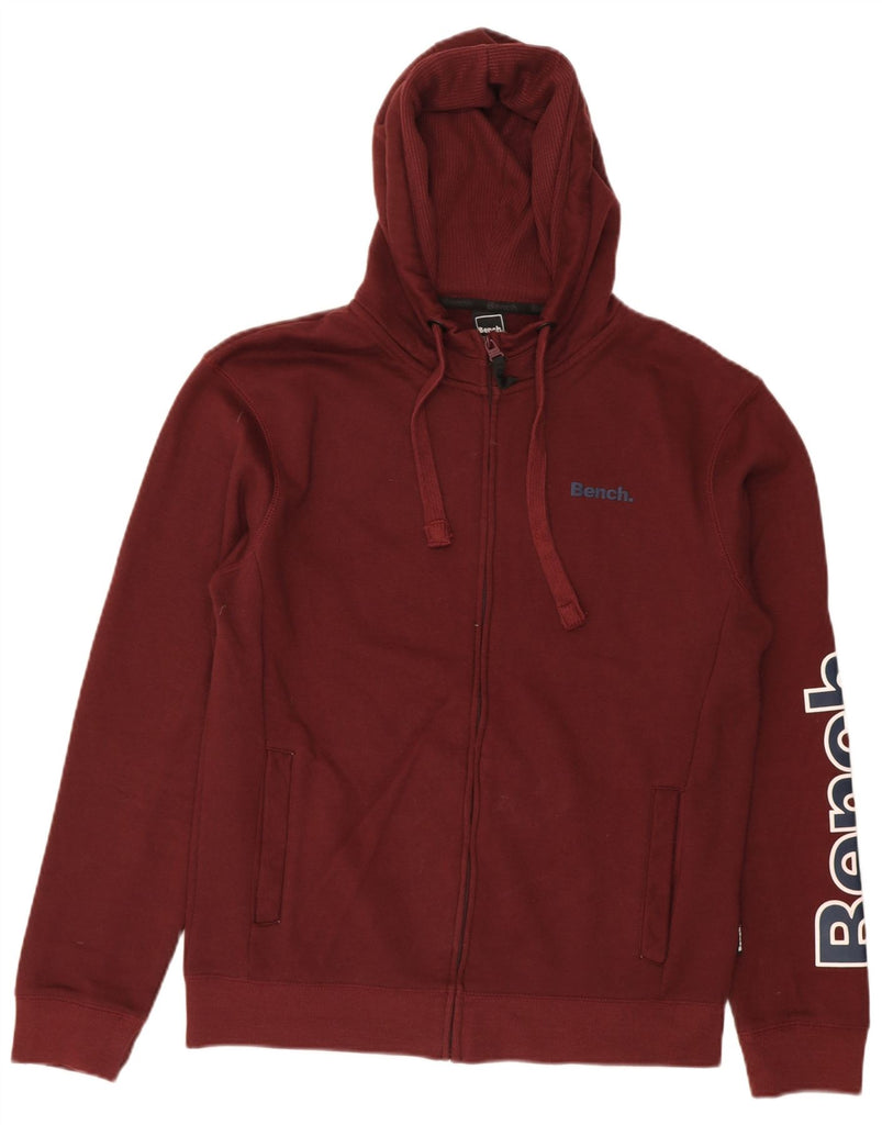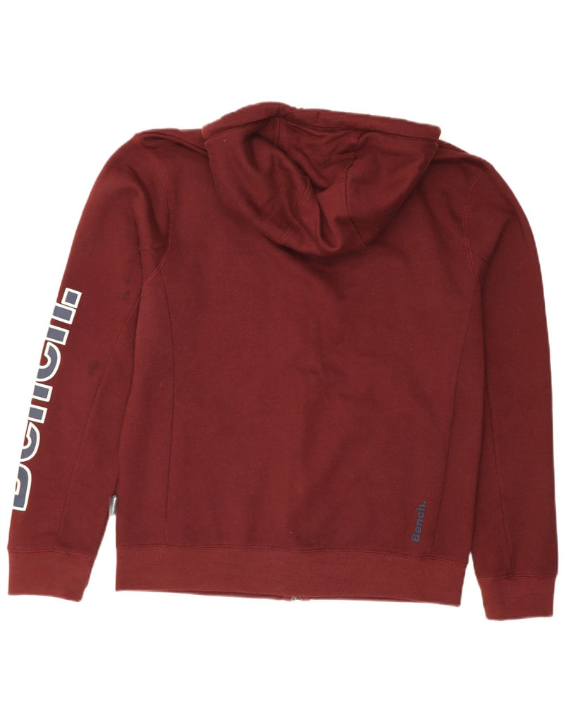 BENCH Mens Graphic Zip Hoodie Sweater EU 52 Large Burgundy Cotton