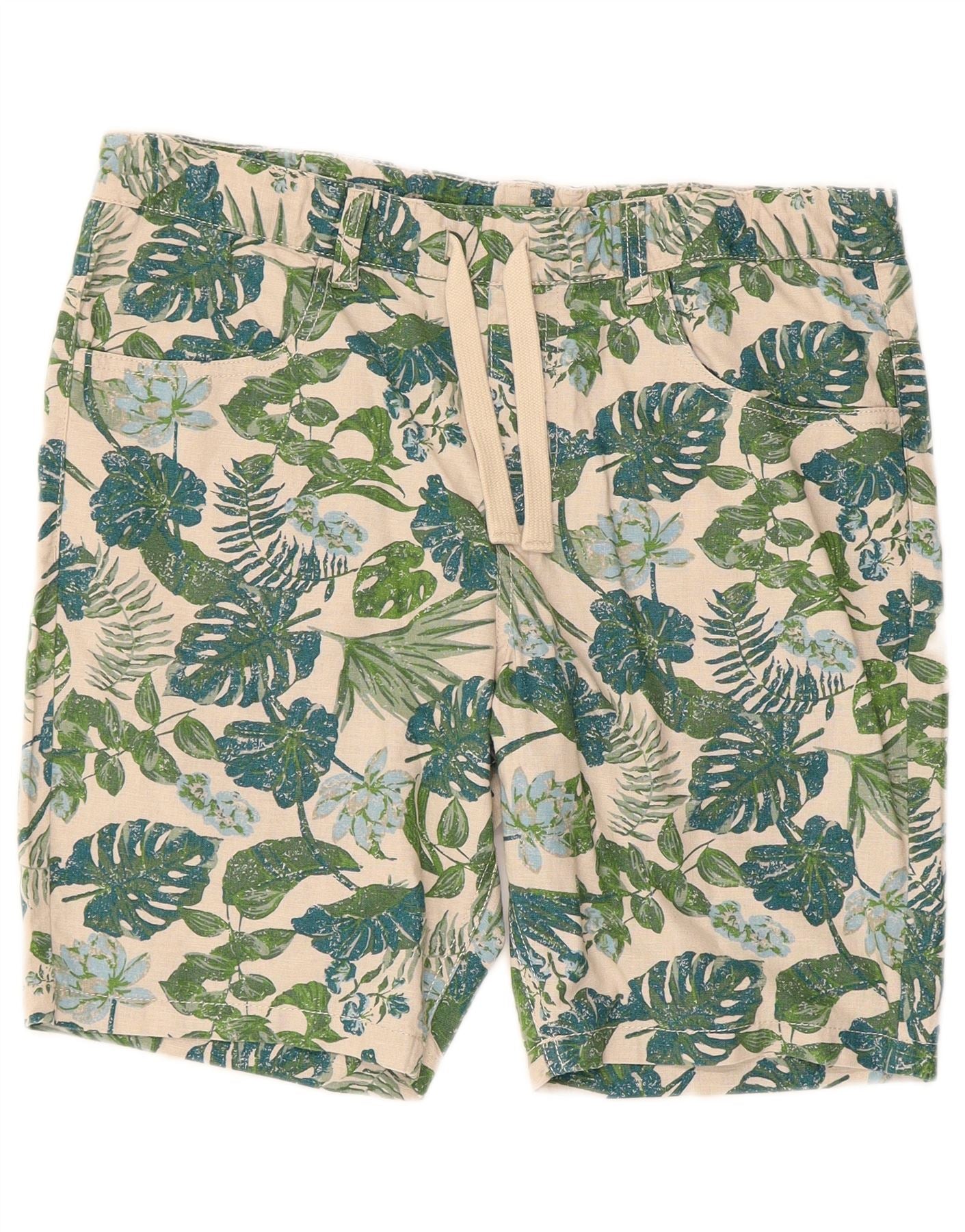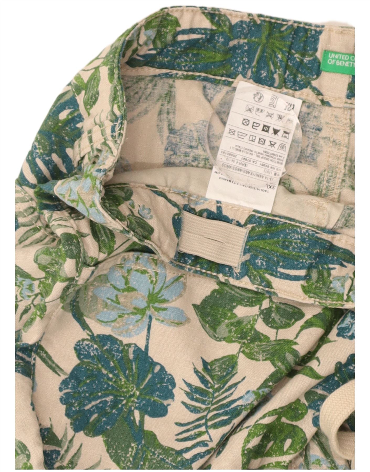 BENETTON Boys Casual Shorts 13-14 Years 3XL W36 Beige Floral Linen