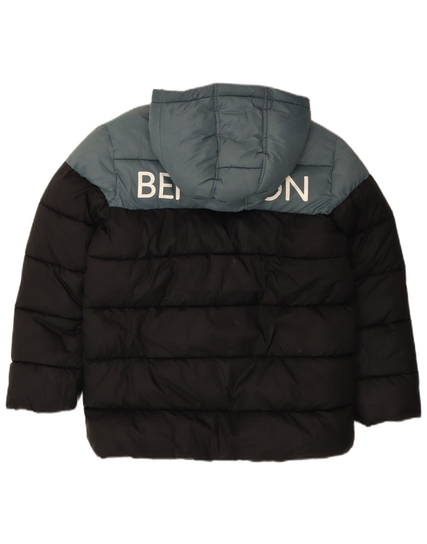 BENETTON Boys Graphic Padded Jacket 10-11 Years XL Black Colourblock