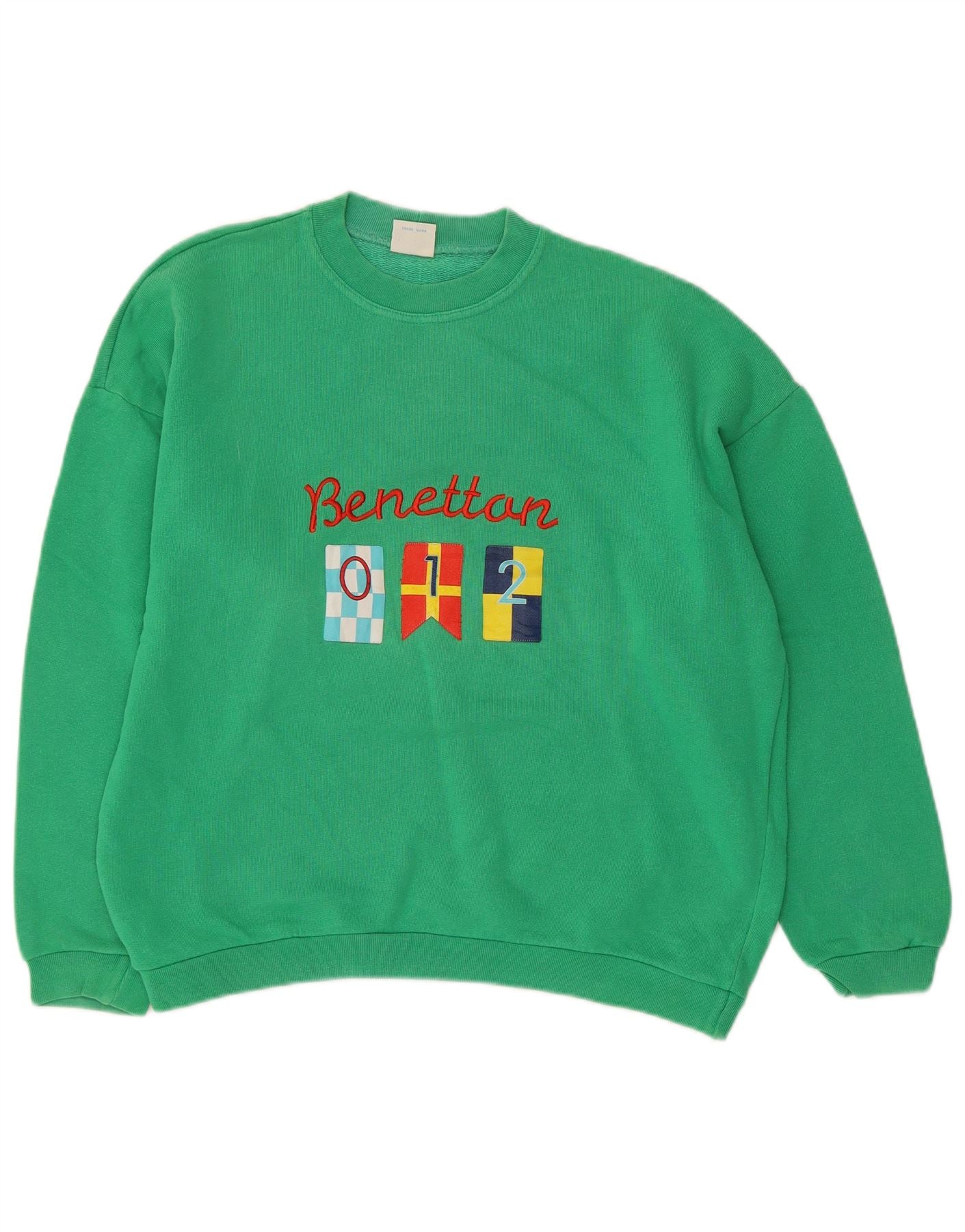 BENETTON Boys Graphic Sweatshirt Jumper 12-13 Years XL Green Cotton