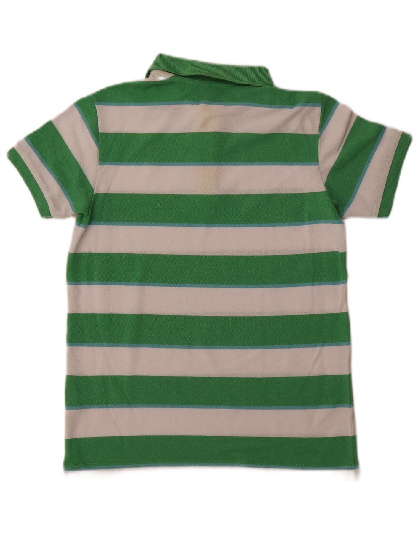 BENETTON Boys Polo Shirt 10-11 Years XL Green Striped Polyester
