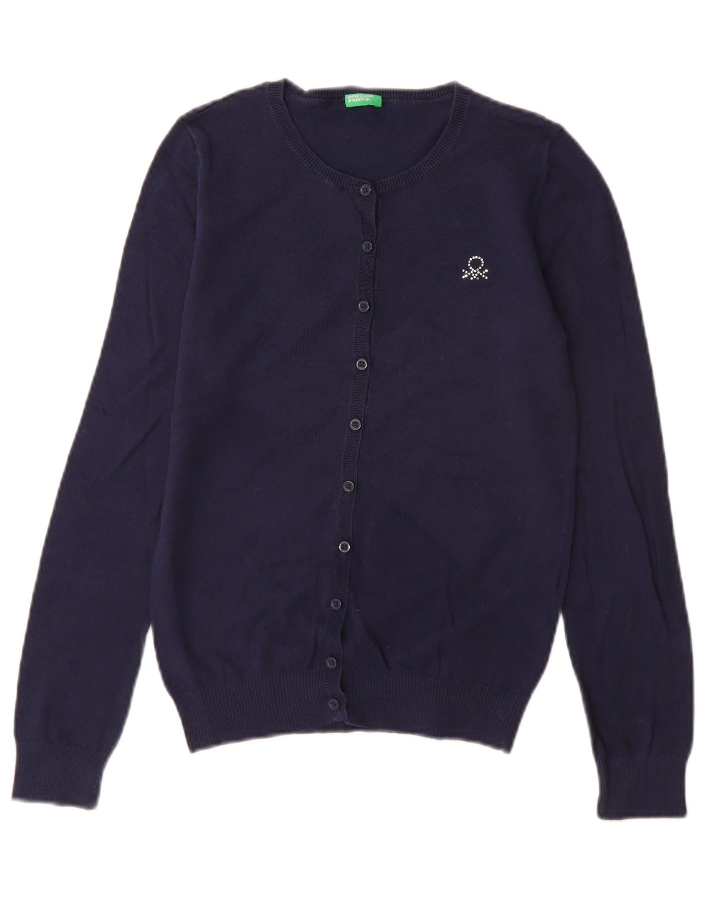 BENETTON Girls Cardigan Sweater 13-14 Years 3XL Navy Blue Cotton