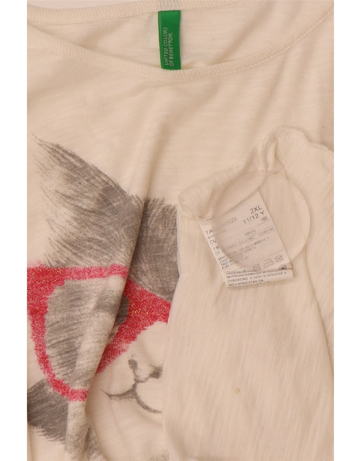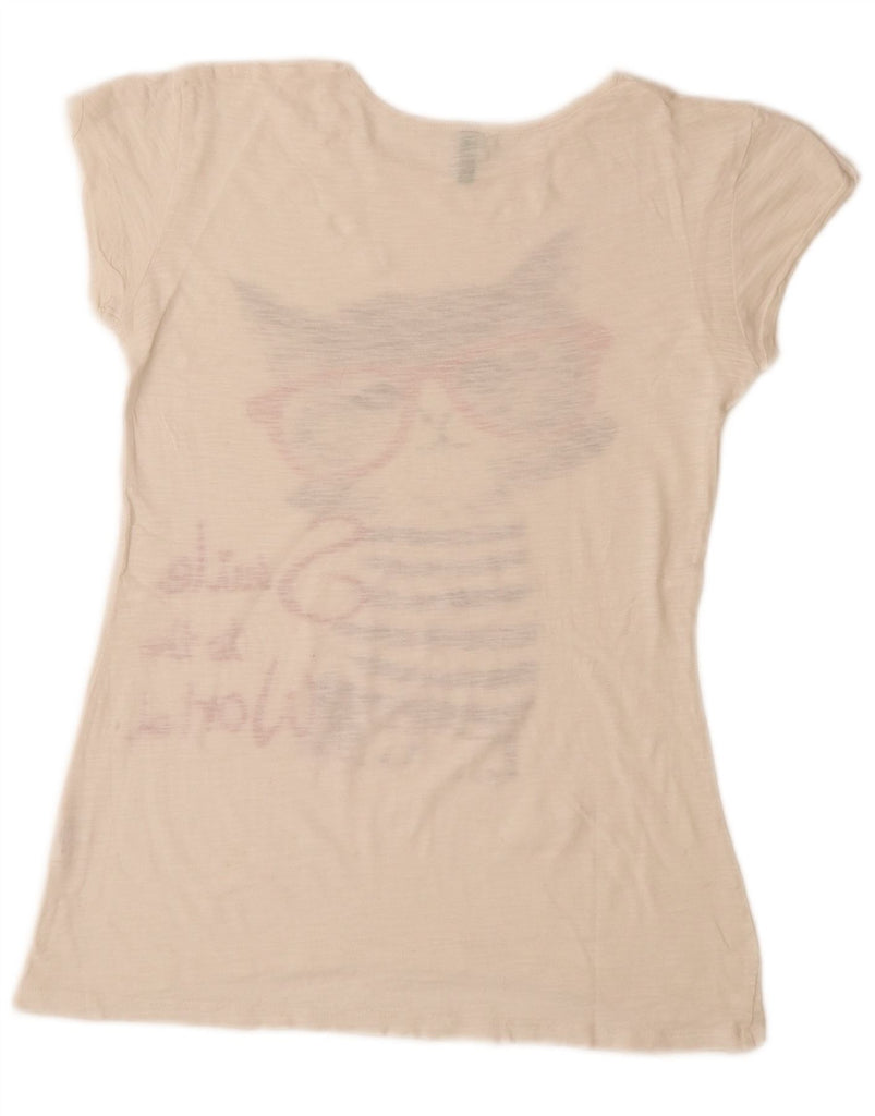 BENETTON Girls Graphic T-Shirt Top 11-12 Years 2XL Off White Cotton
