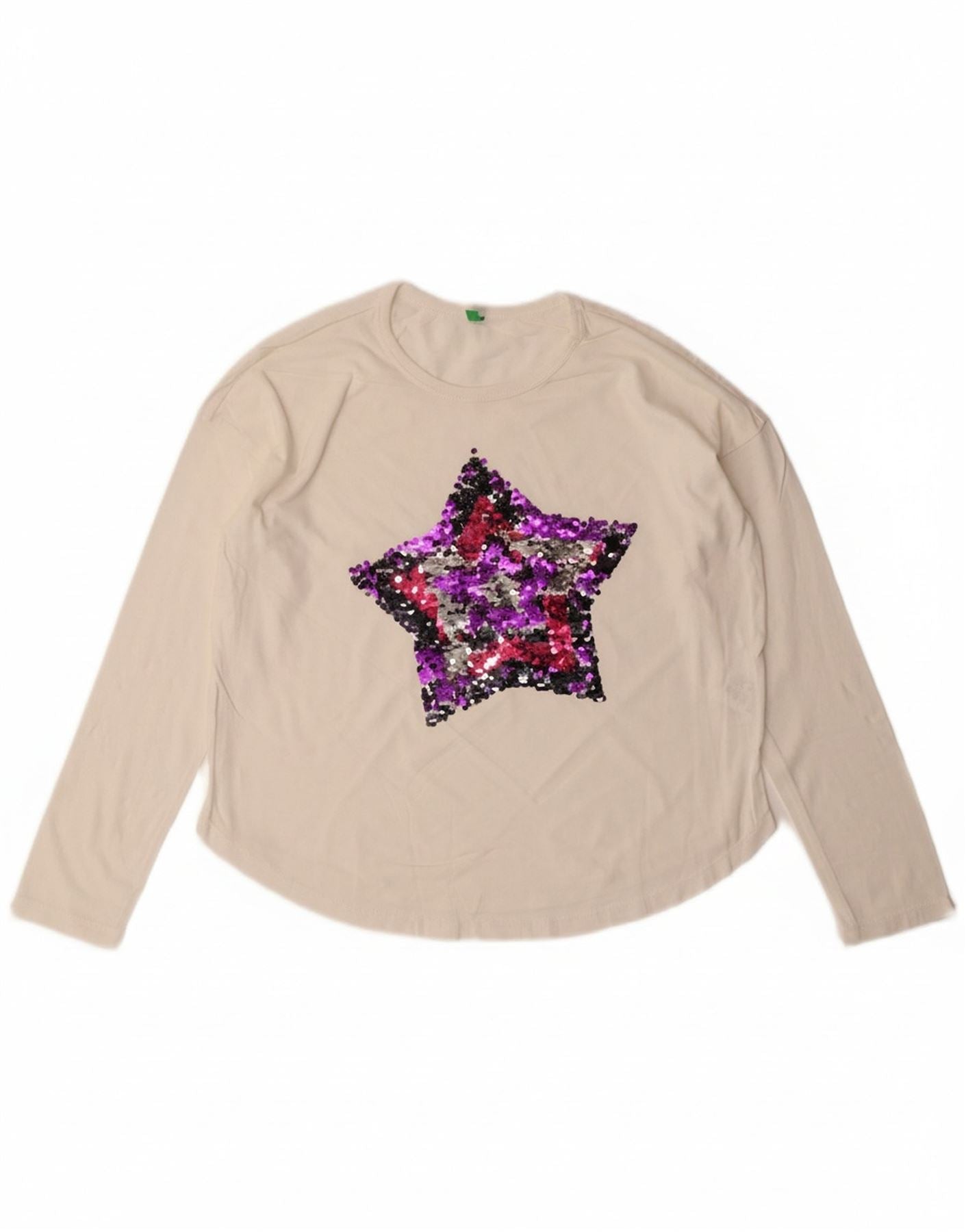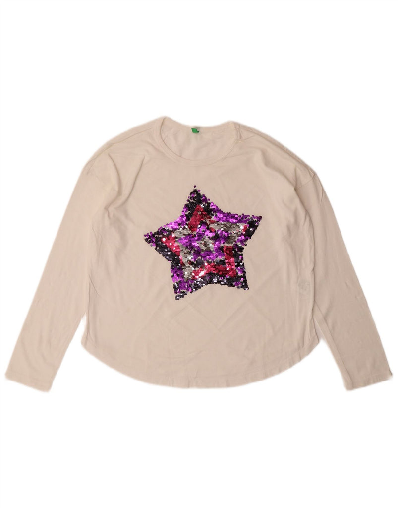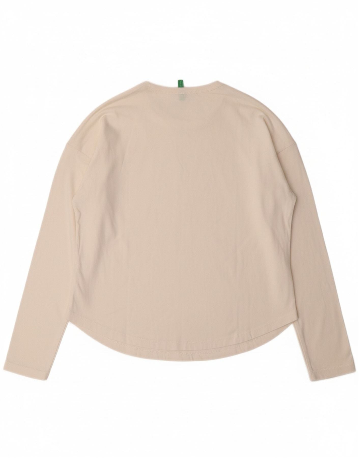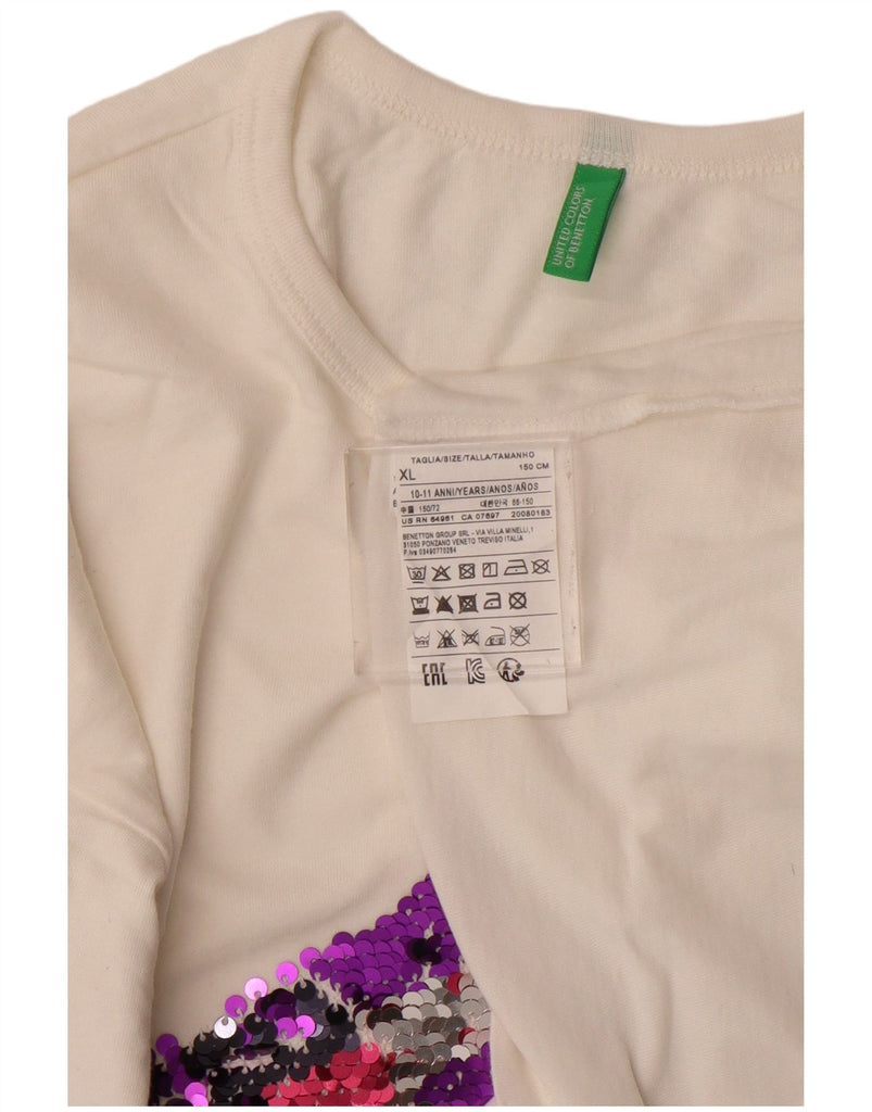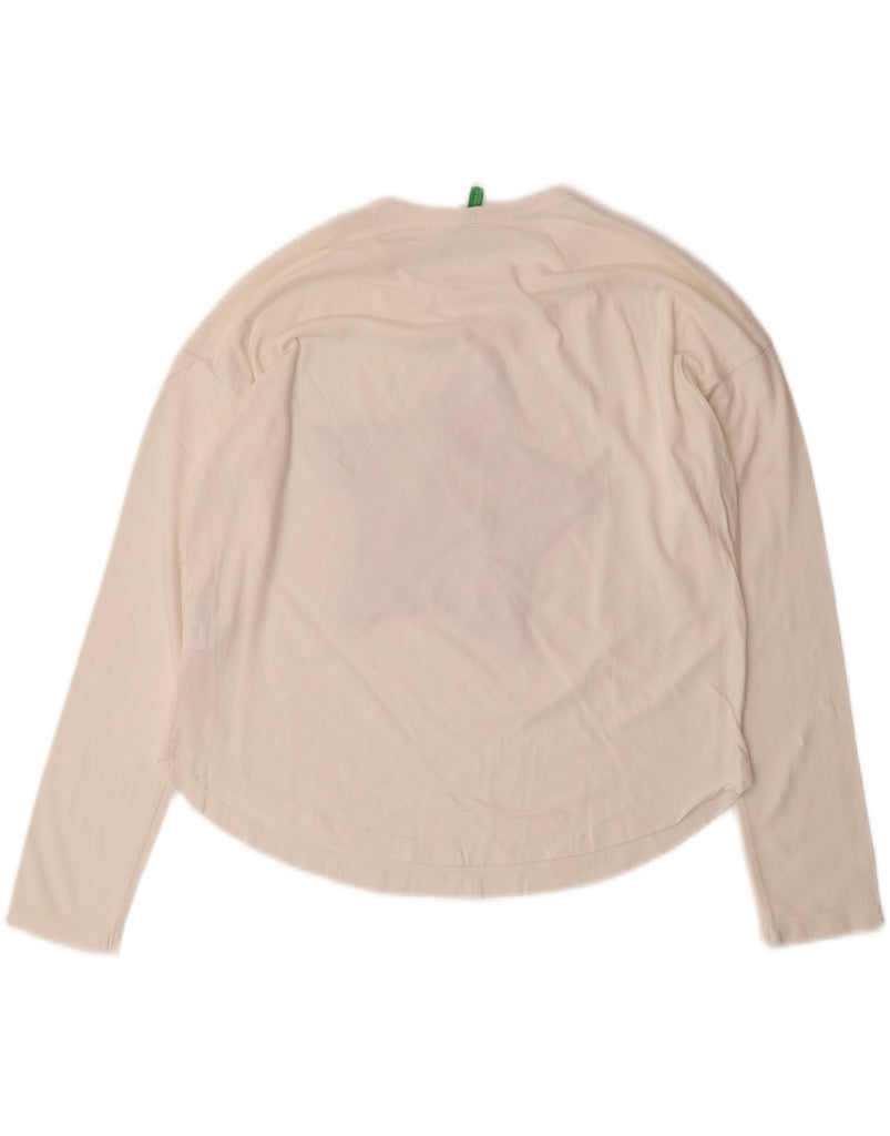 BENETTON Girls Graphic Top Long Sleeve 10-11 Years XL White Cotton