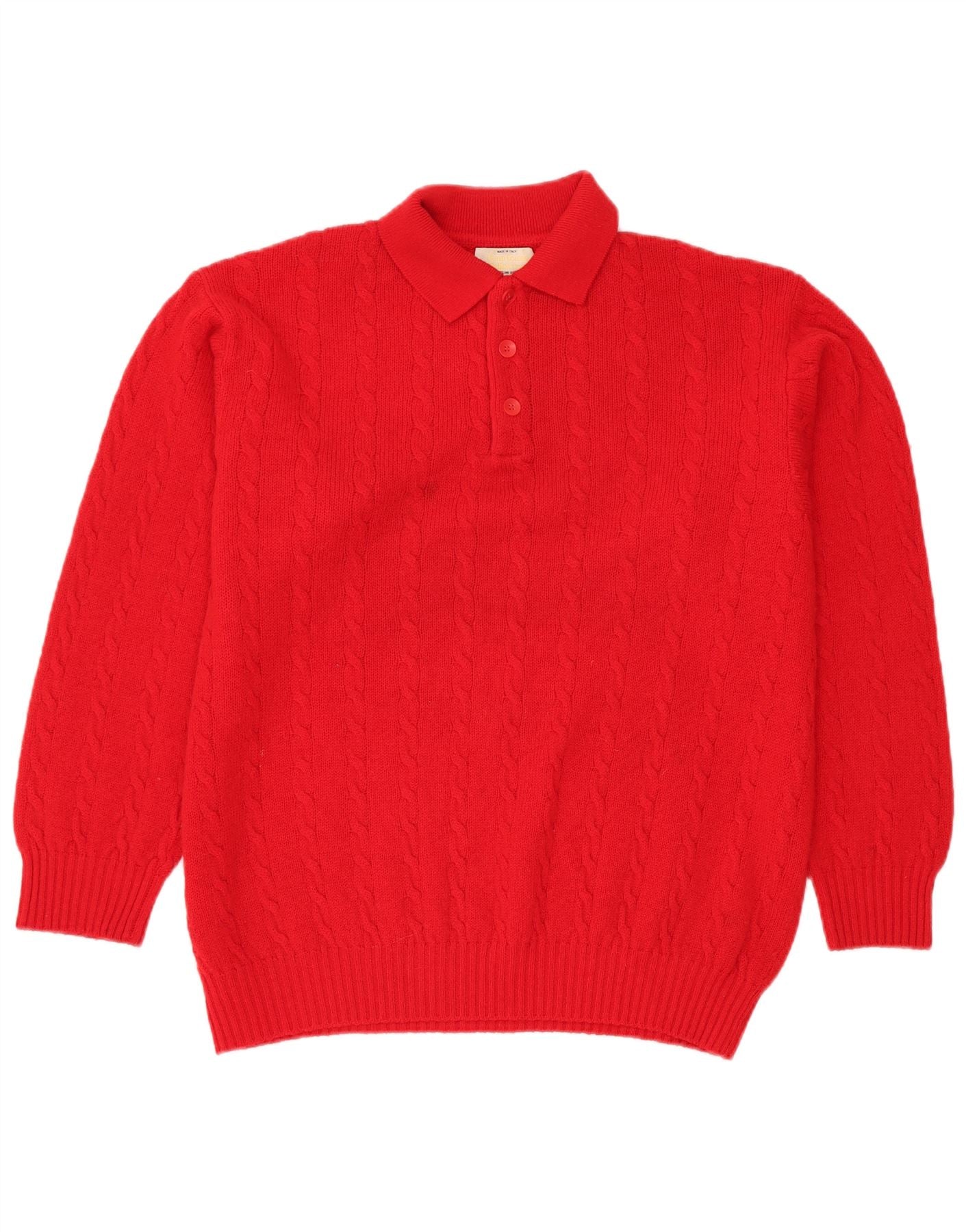 BENETTON Mens Polo Neck Jumper Sweater IT 52 Large Red Virgin Wool