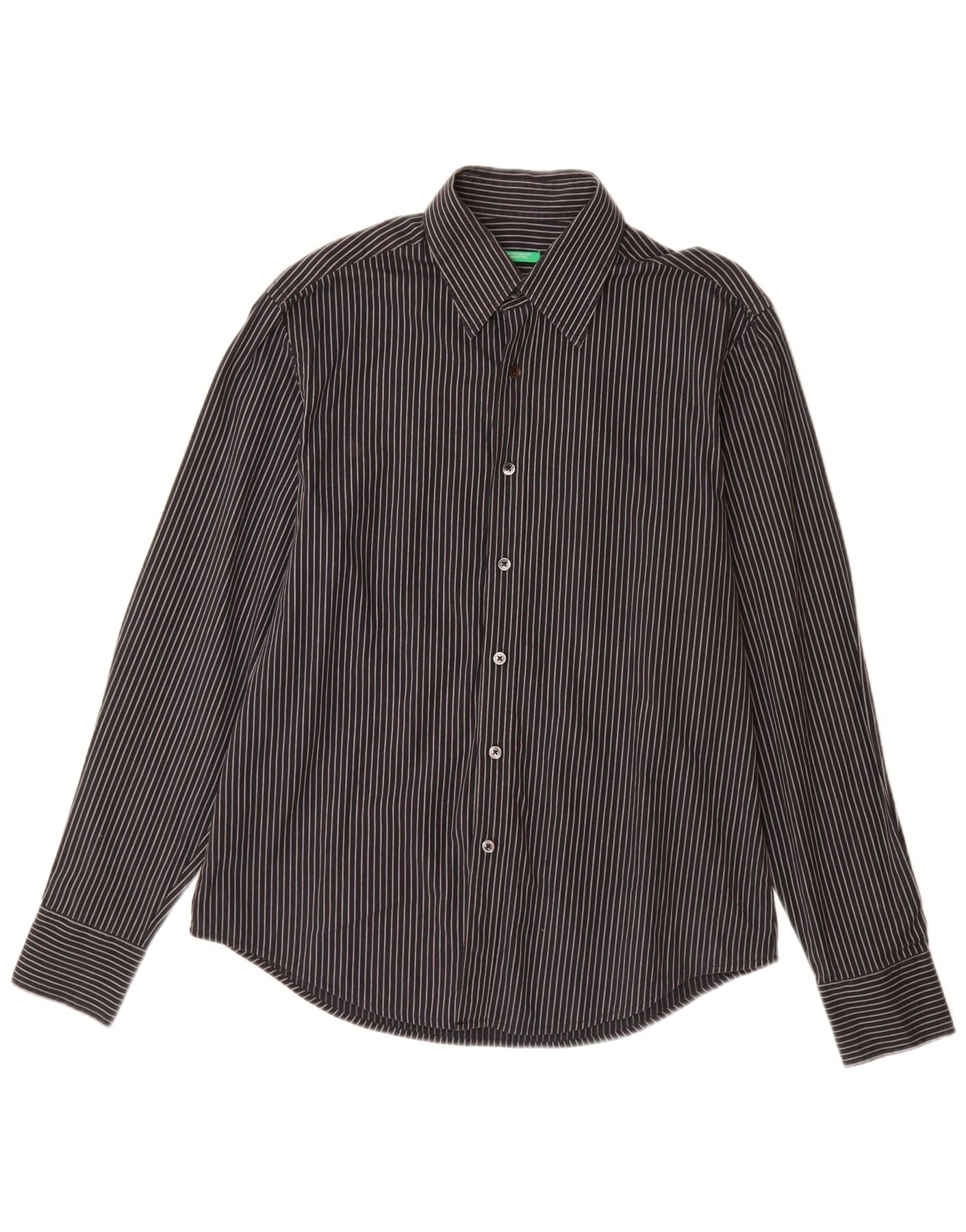 BENETTON Mens Shirt Medium Black Pinstripe Cotton