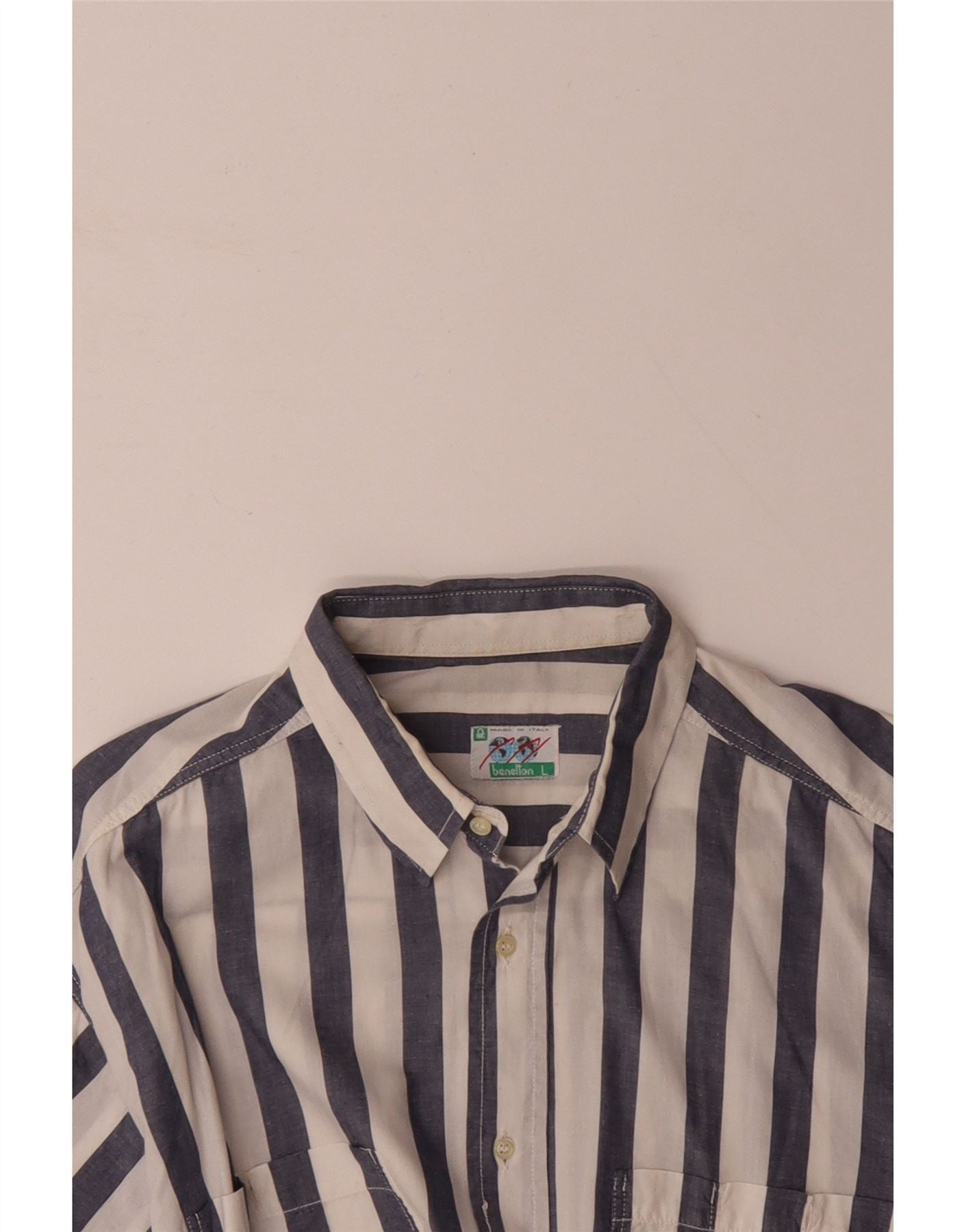 BENETTON Mens Short Sleeve Shirt Large Navy Blue Striped