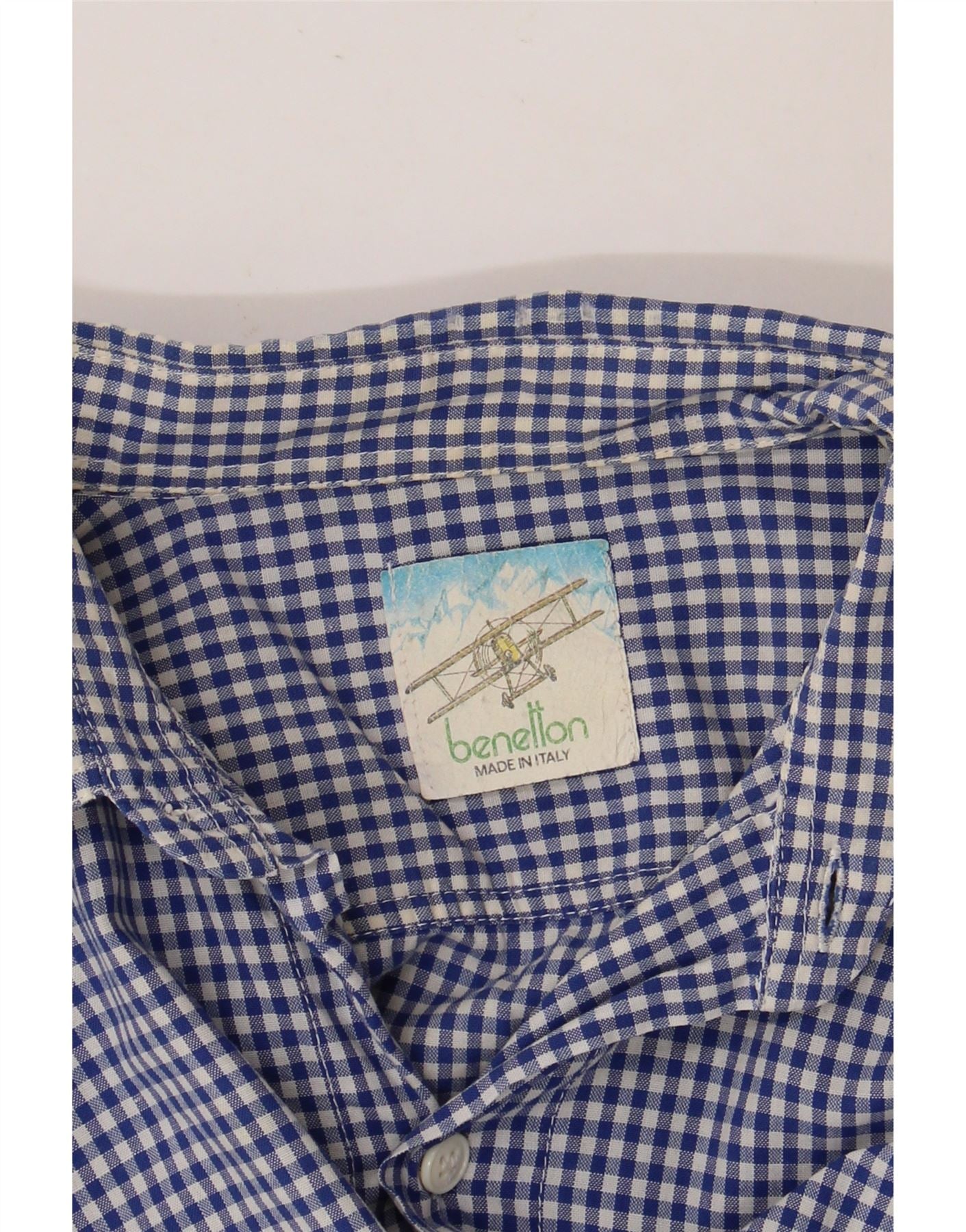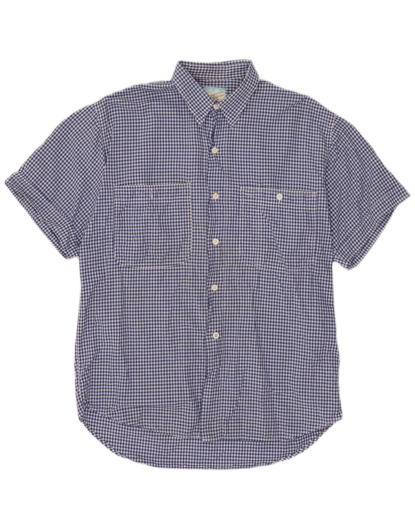BENETTON Mens Short Sleeve Shirt XL Blue Gingham