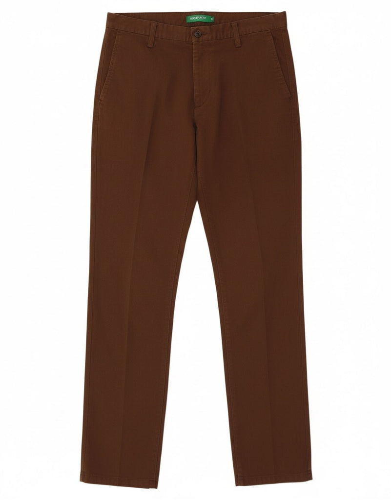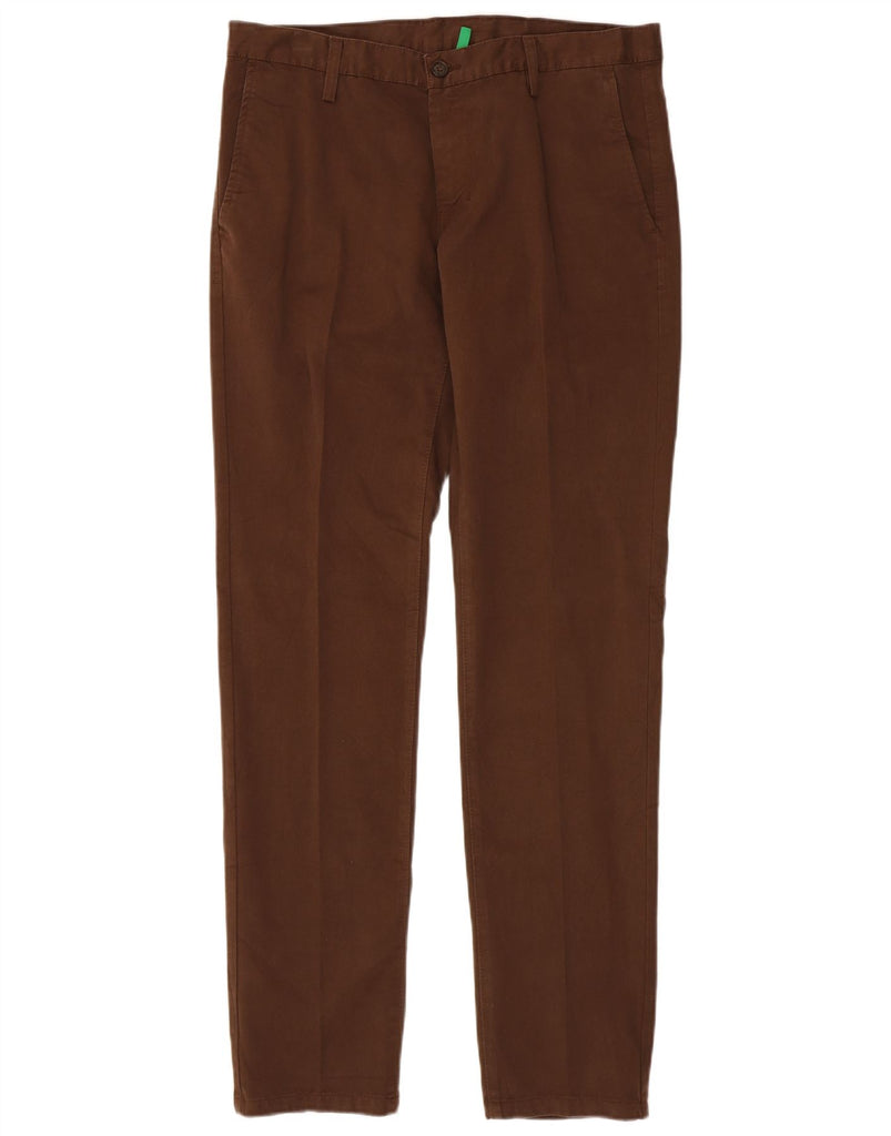 BENETTON Mens Slim Chino Trousers IT 50 Large W36 L35 Brown Cotton