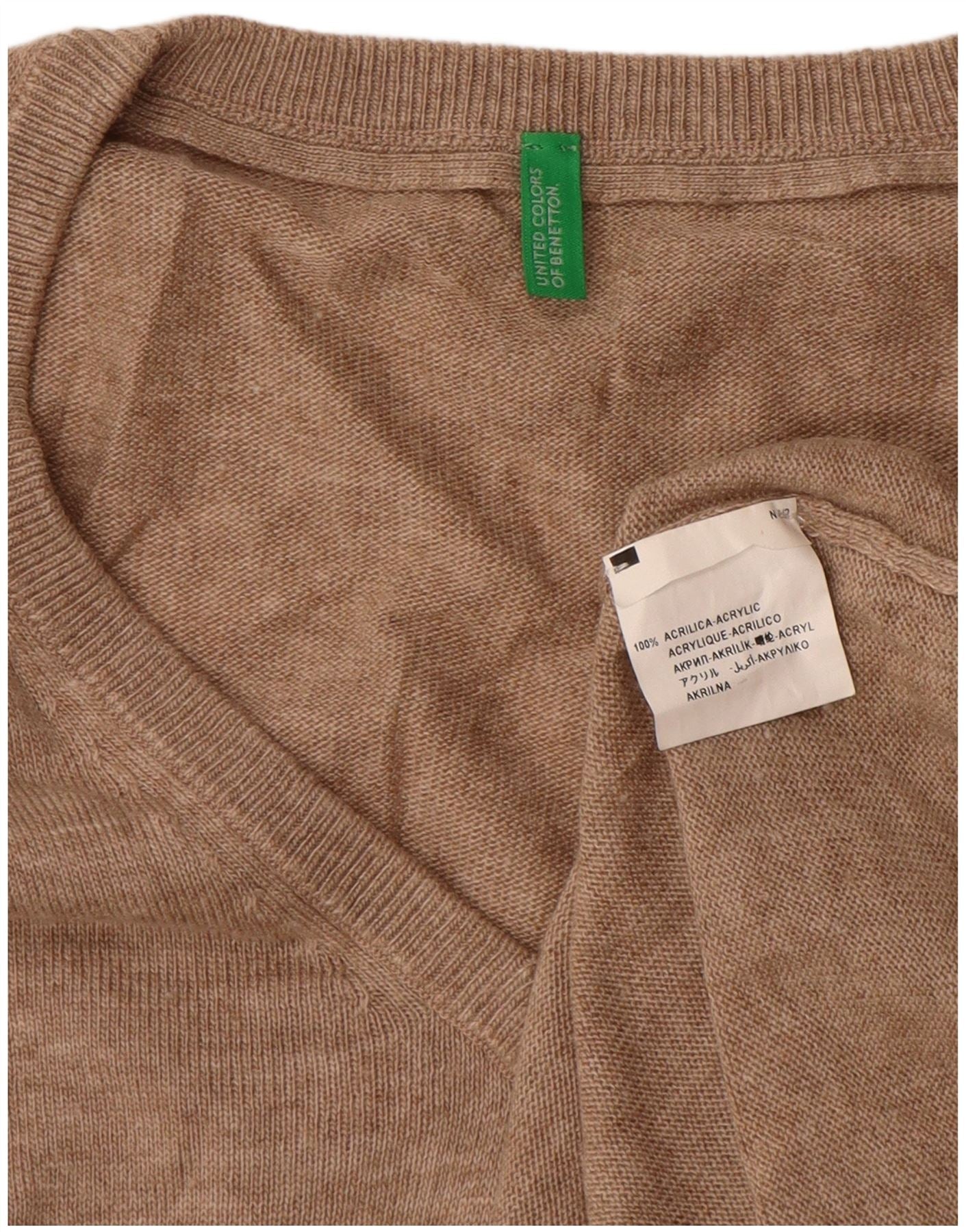 BENETTON Mens V-Neck Jumper Sweater Large Beige