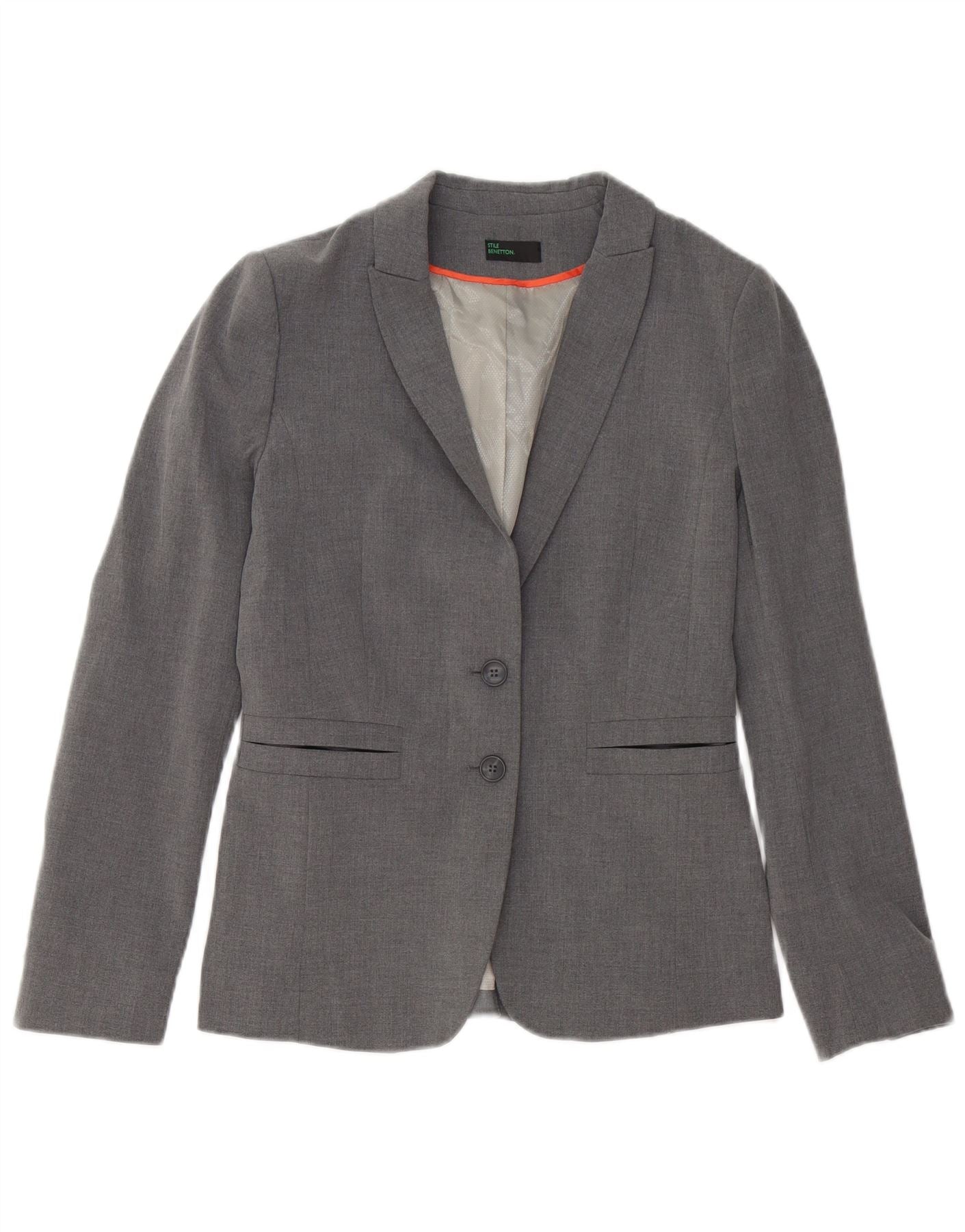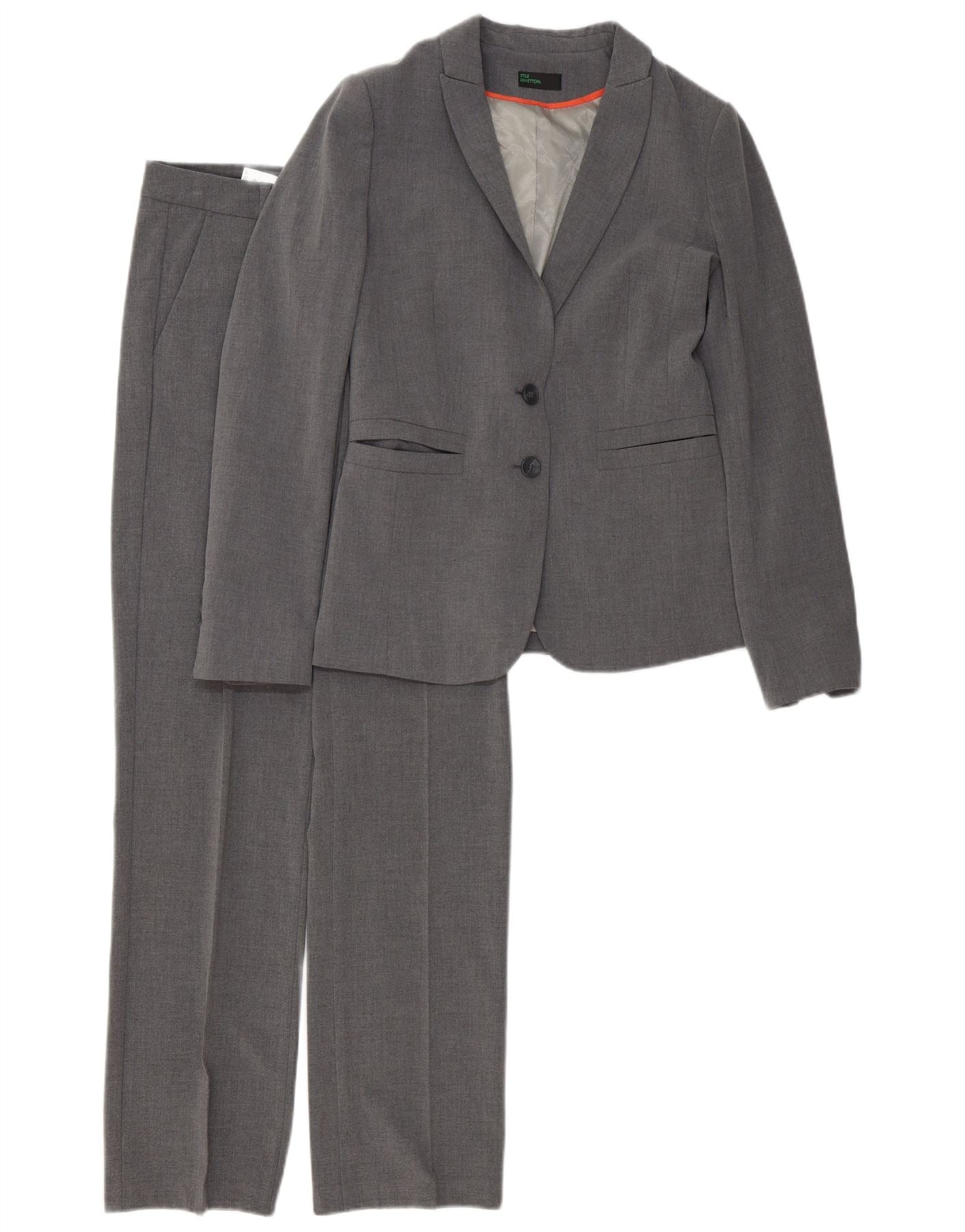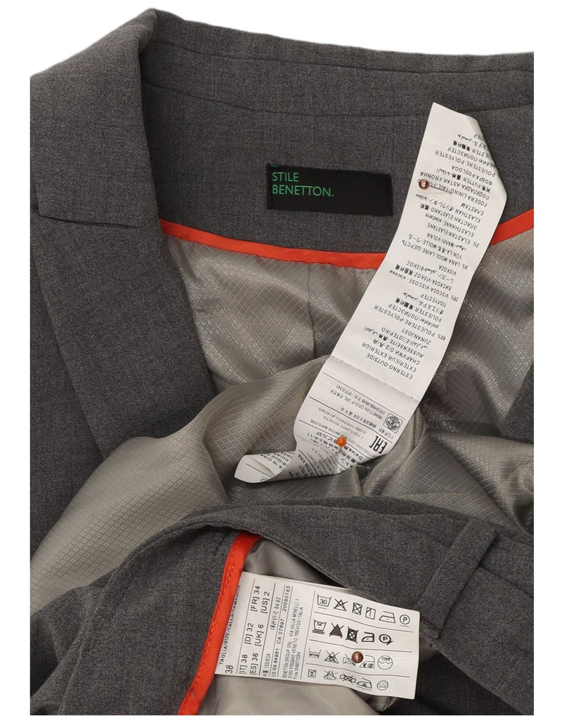 BENETTON Womens 2 Button 2 Piece Suit UK 6 XS W34 L32 Grey Polyester