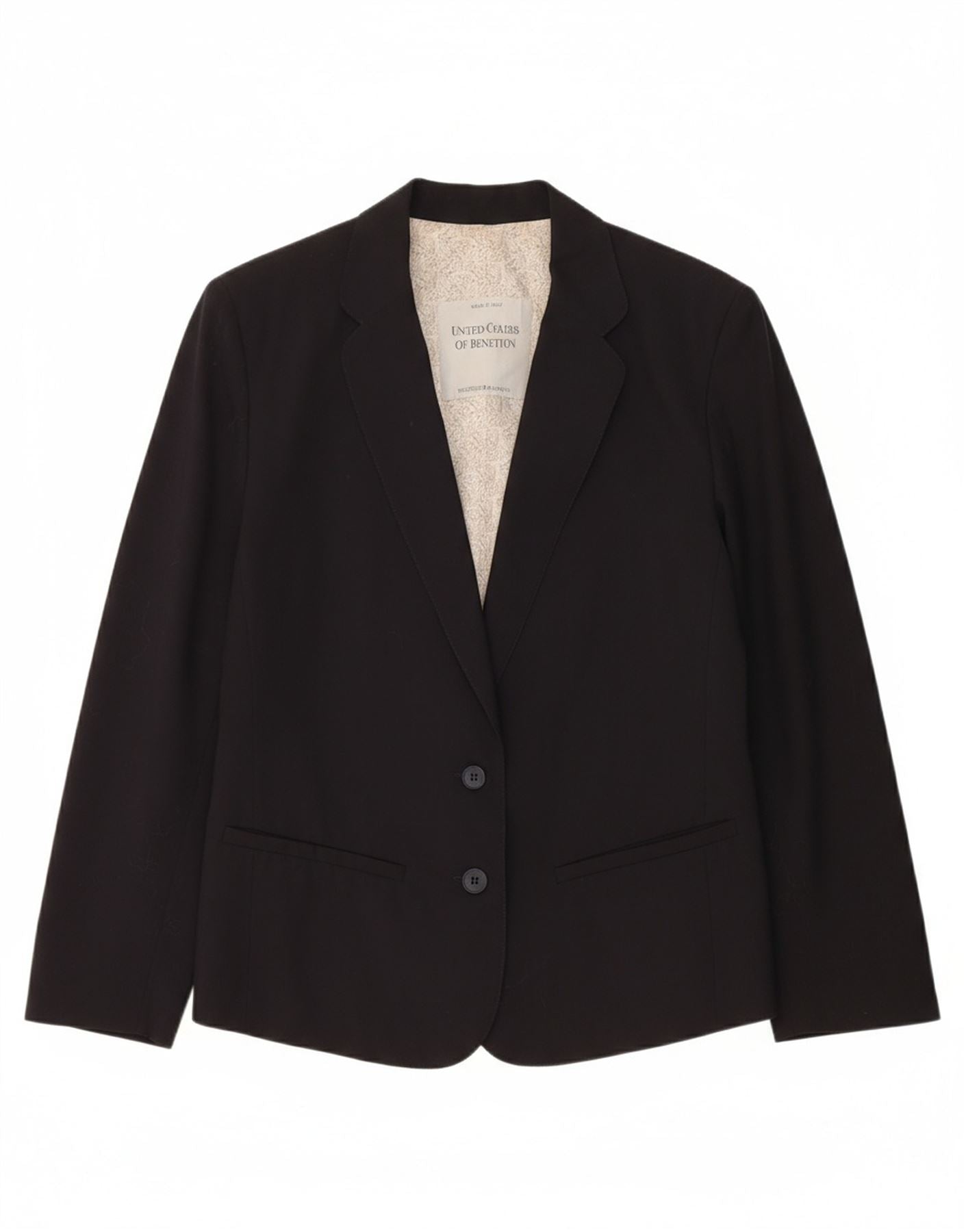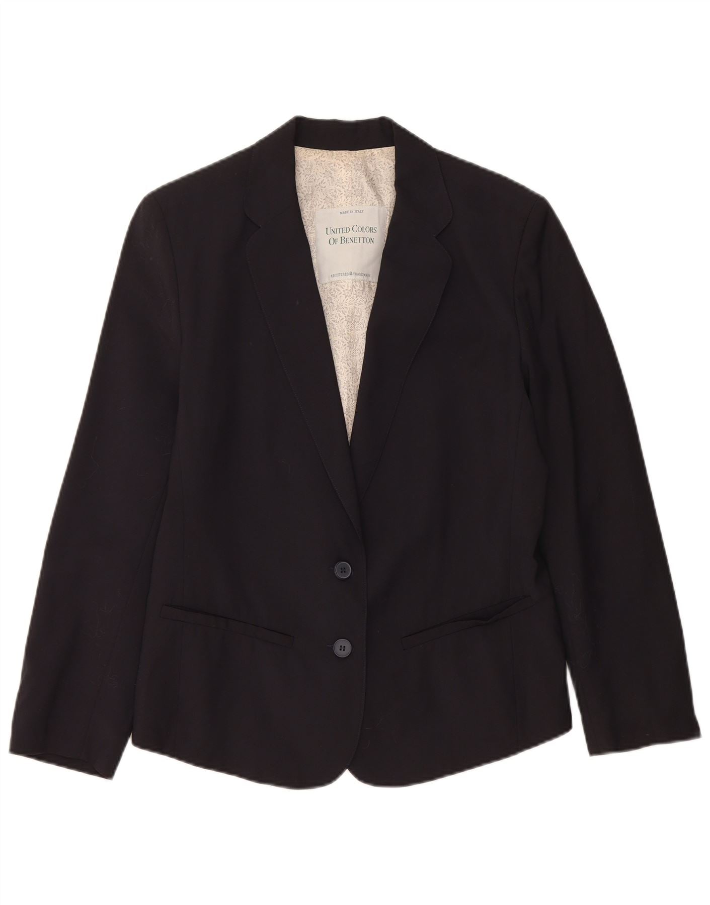 BENETTON Womens 2 Button Blazer Jacket IT 44 Medium Navy Blue Wool