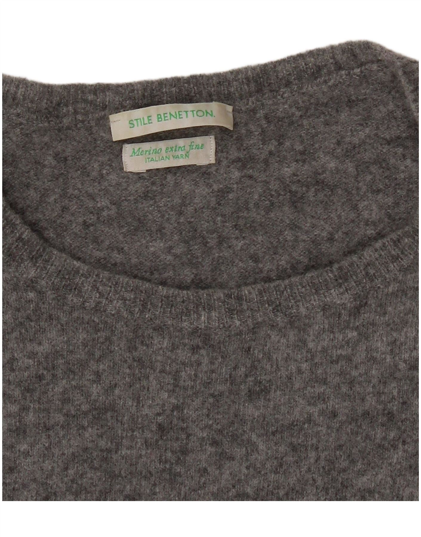 BENETTON Womens Boat Neck Jumper Sweater UK 6 XS Grey Merino Wool