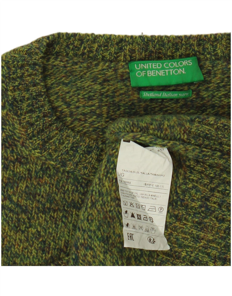 BENETTON Womens Crew Neck Jumper Sweater UK 16 Large Green Flecked