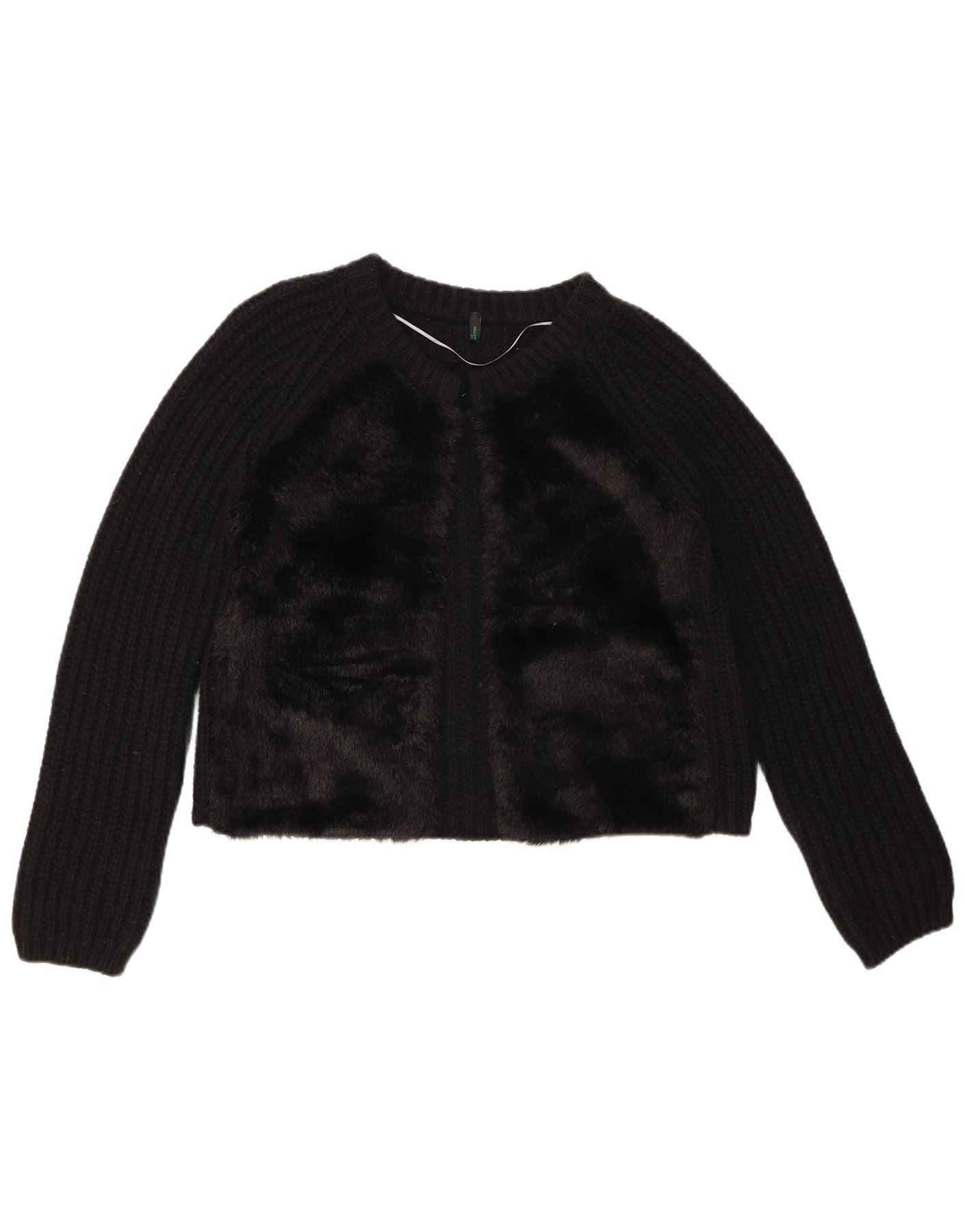 BENETTON Womens Crop Cardigan Sweater UK 10 Small Black Wool
