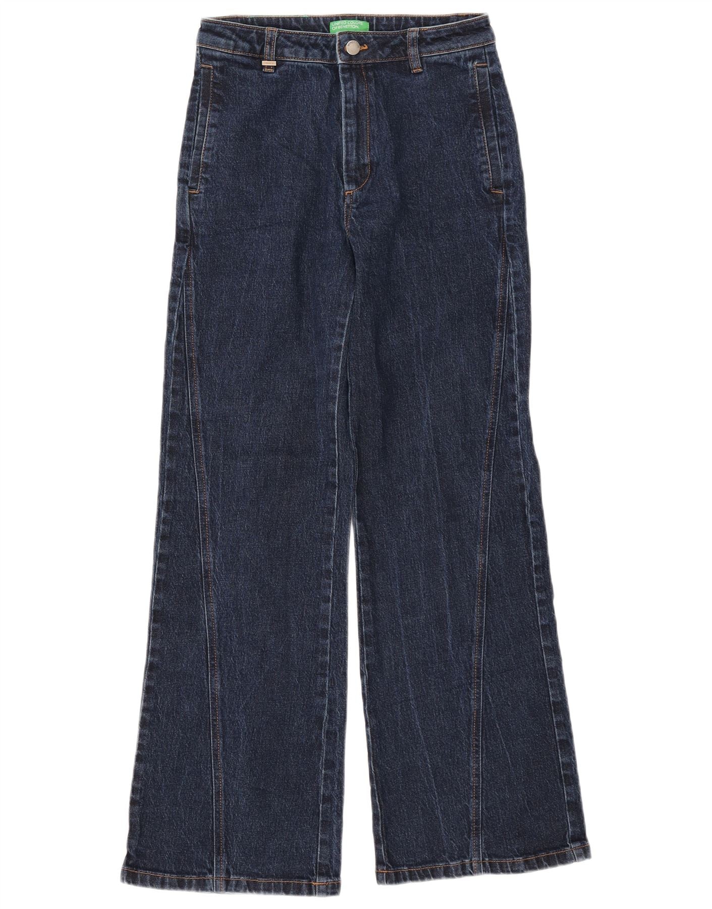 BENETTON Womens Flared Jeans UK 6 XS W28 L30 Navy Blue Cotton