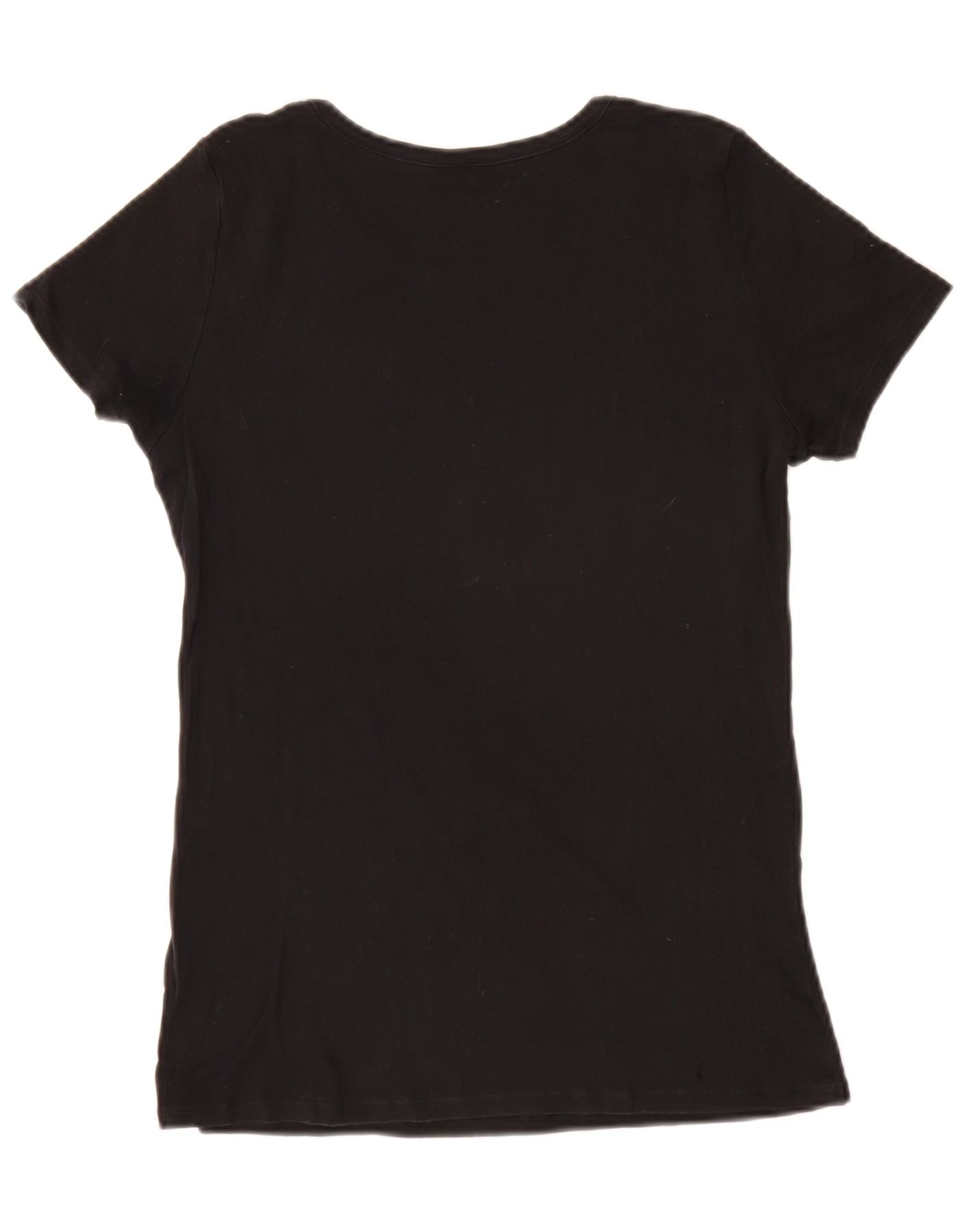 BENETTON Womens Graphic T-Shirt Top UK 16 Small Black