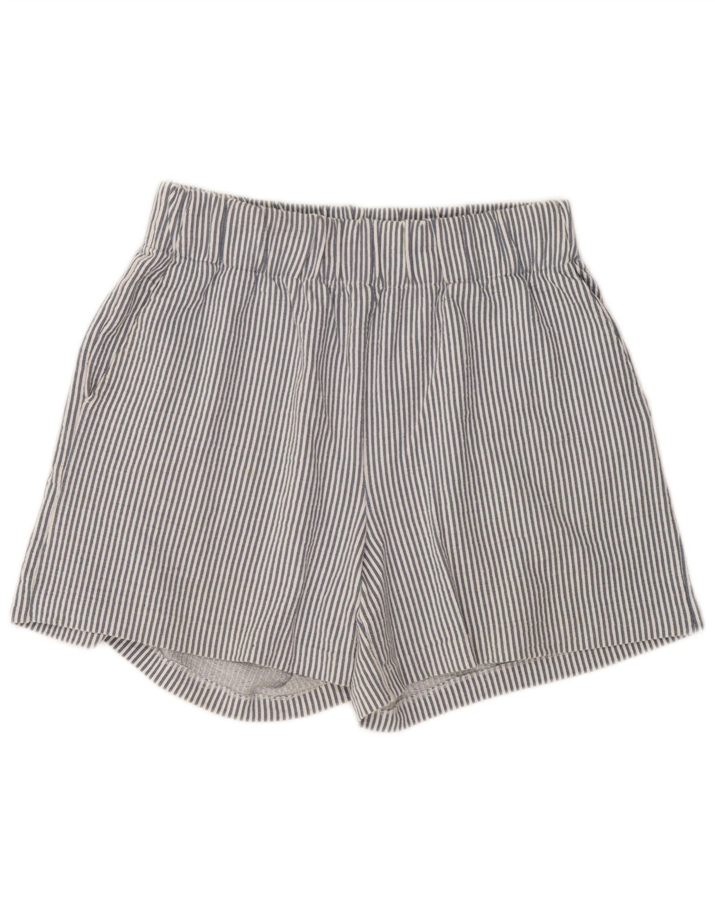 Benetton Womens High Waist Shorts Medium W30 Blue Pinstripe Cotton