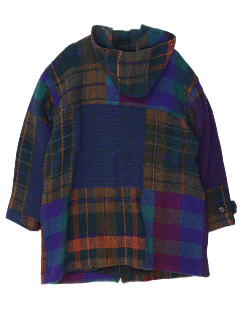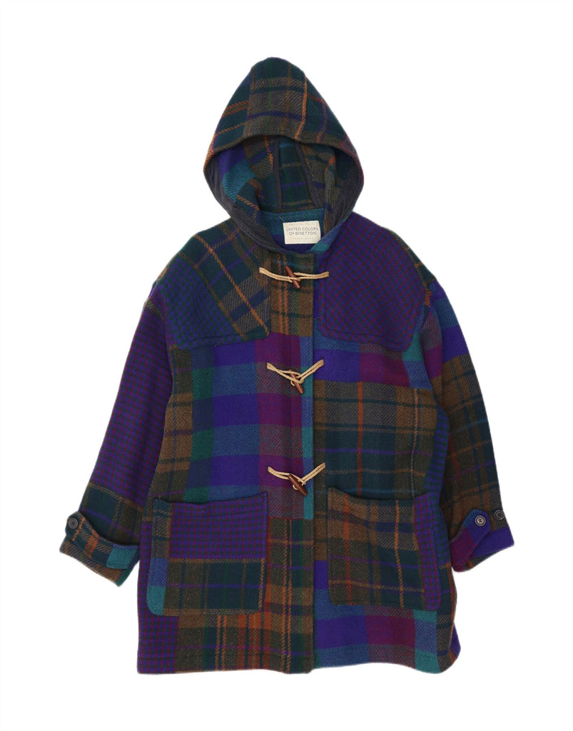 BENETTON Womens Hooded Duffle Coat IT 44 Medium Multicoloured Patchwork