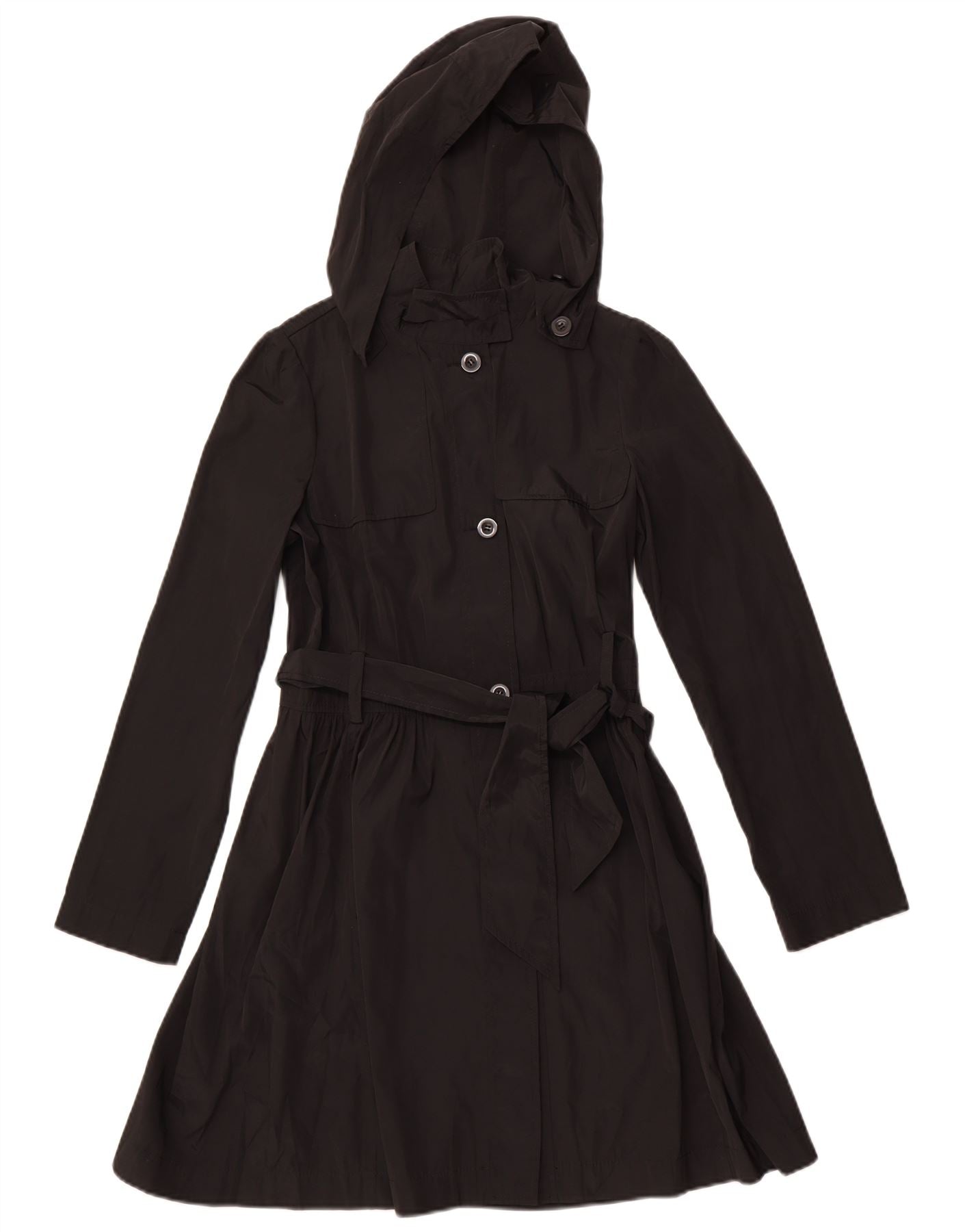 BENETTON Womens Hooded Trench Coat IT 42 Medium Black Polyester